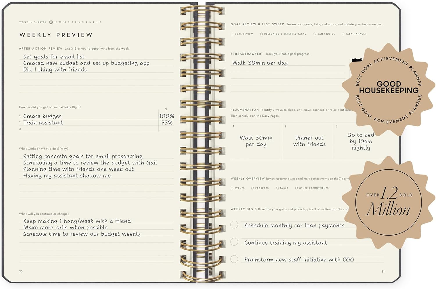 - 📈 TRACK YOUR PROGRESS & STAY FOCUSED – Utilize the weekly and quarterly review templates, alongside daily task lists, to seamlessly bridge the gap between your everyday actions and your long-term ambitions. With your priorities consistently in sight, you won’t be derailed by life’s daily demands. The Full Focus Planner empowers you to filter through the noise of the urgent and focus on what truly matters, ensuring steady progress toward your most important goals.