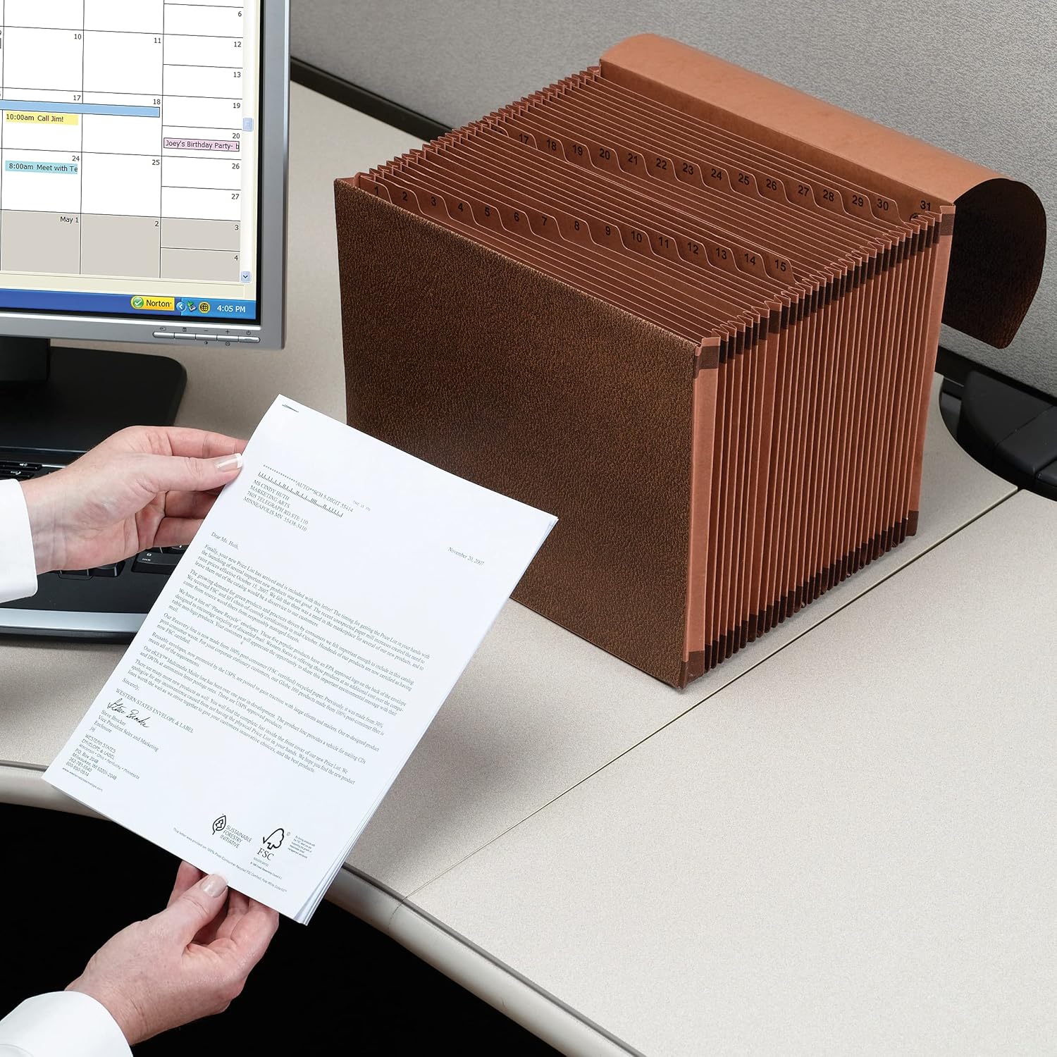 - Includes 1 legal size (15" W x 10" H) expanding file featuring 31 pockets with daily (1-31) indexing for organizing, storing and transporting important files