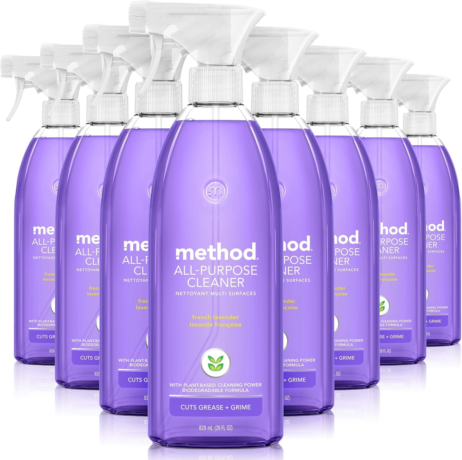 Method All-Purpose Cleaner Spray, French Lavender, Plant-Based and Biodegradable Formula Perfect for Most Counters, Tiles and More, 28 Fl Oz, (Pack of 8)