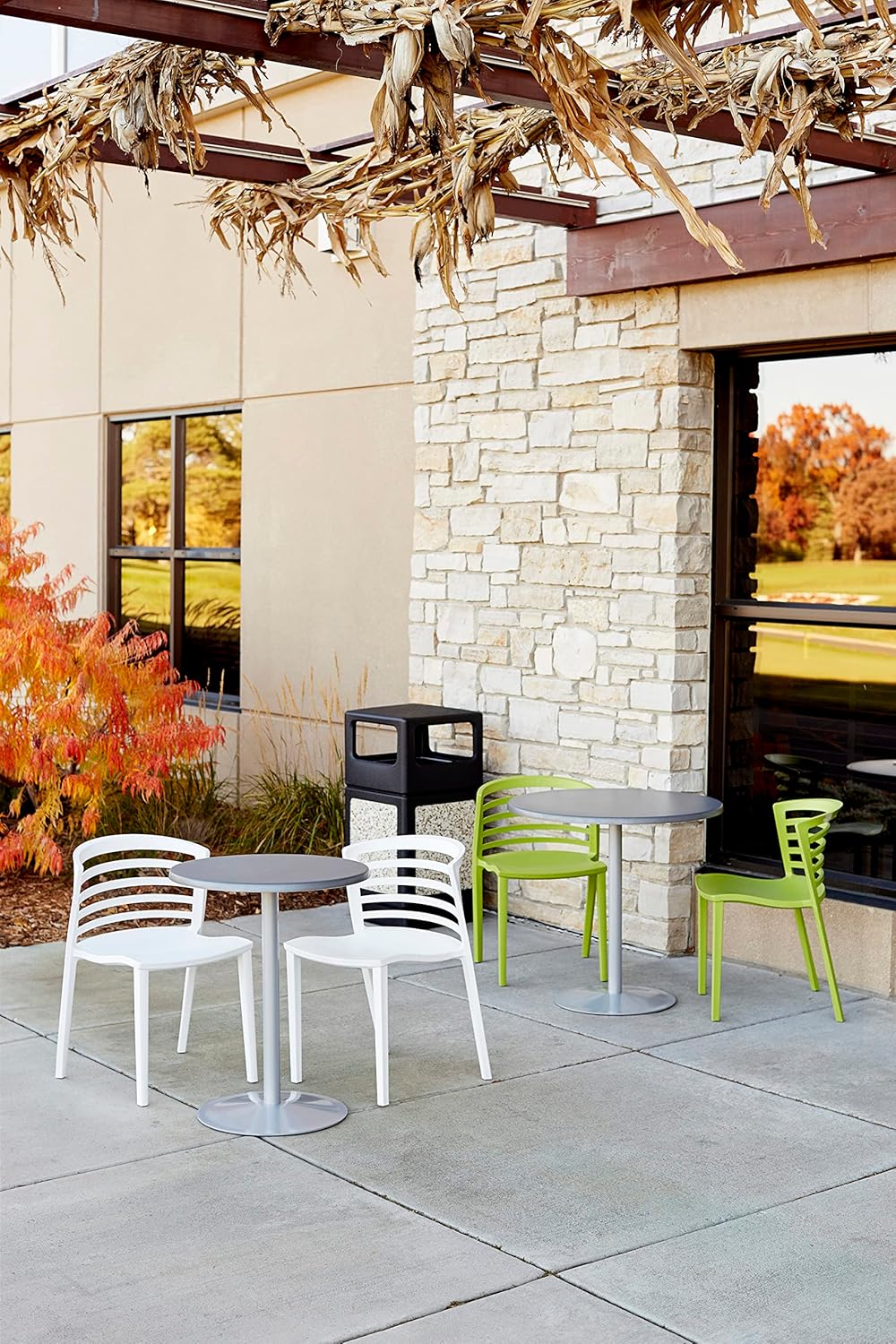 - BLENDS IN NATURALLY. Canmeleon Outdoor and Indoor Aggregate Panel Trash Can blends natural stone panels, four convenient openings and a covered dome to help enhance outdoor areas while keeping them clean and litter free.