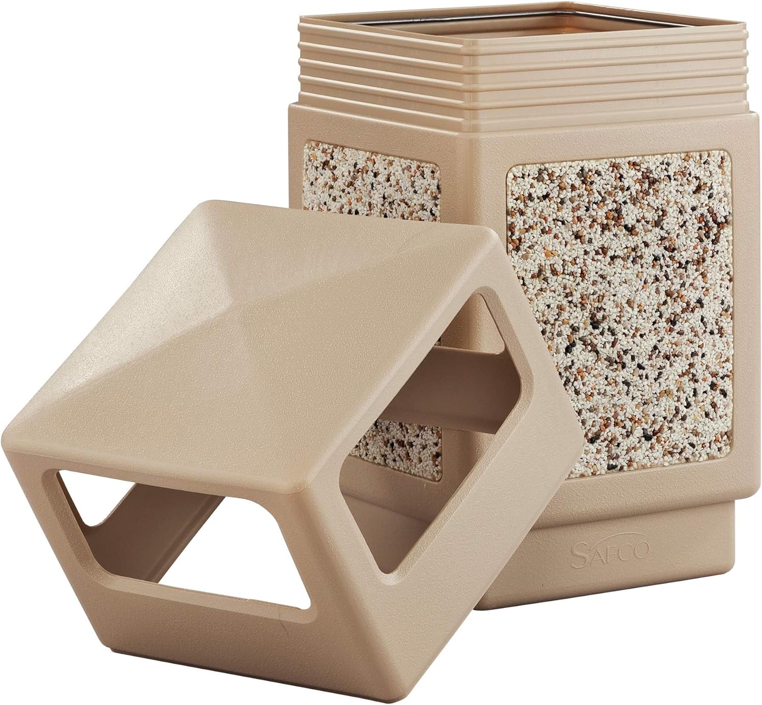 Safco Canmeleon Trash Can, 38 Gallons, Indoor and Outdoor Use, Durable & Weather-Resistant Commercial Garbage Can with Stone Panels, Tan