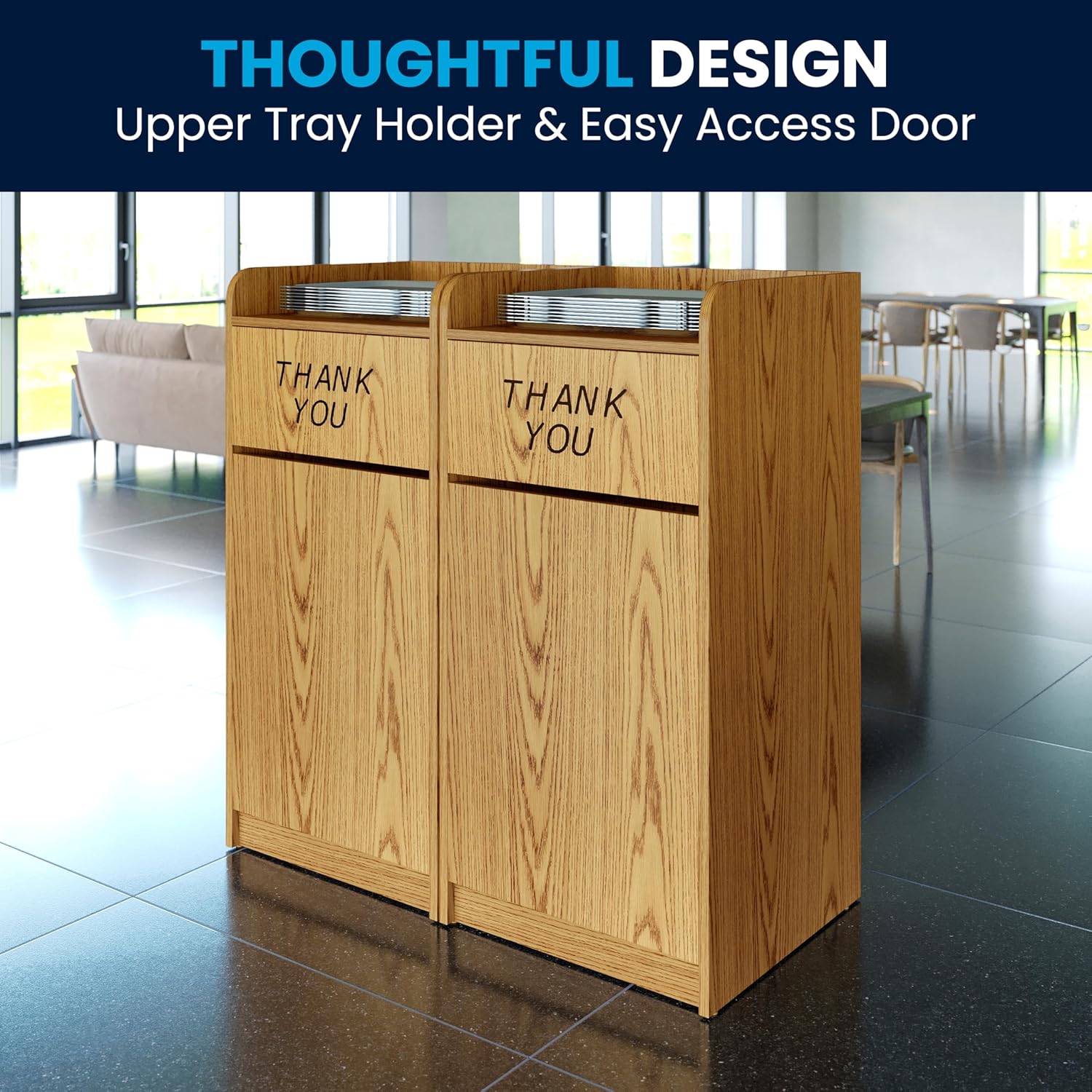 Flash Furniture Sony Laminate Wood Commercial-Grade Trash Receptacle with Tray Top, Wooden Restaurant Trash Can Cabinet and Garbage Receptacle, Oak