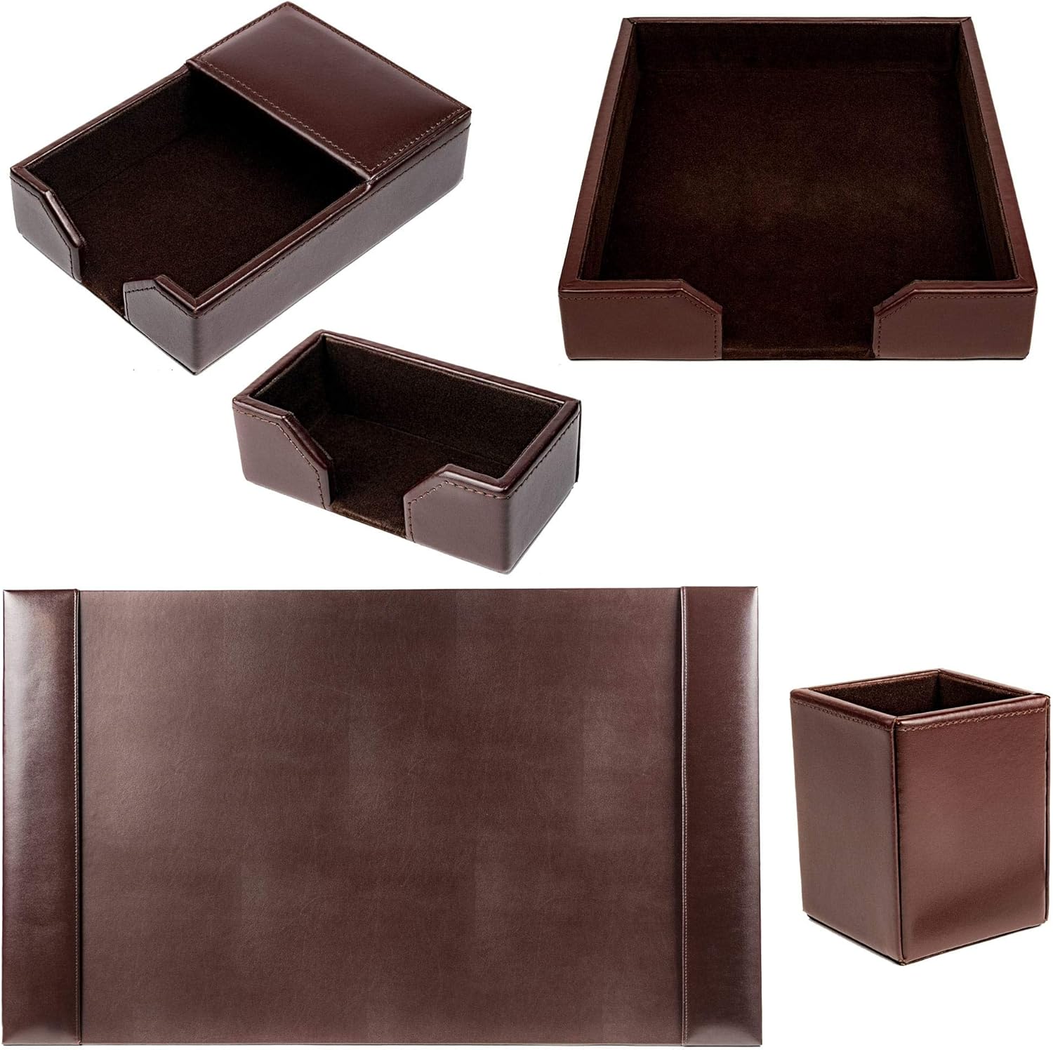 Dacasso Bonded Leather Desk Set - Luxury Leather Desk Pad & Desk Organization Essentials - Office Organization & Executive Desk Decor - (Dark Brown, 5 Piece)