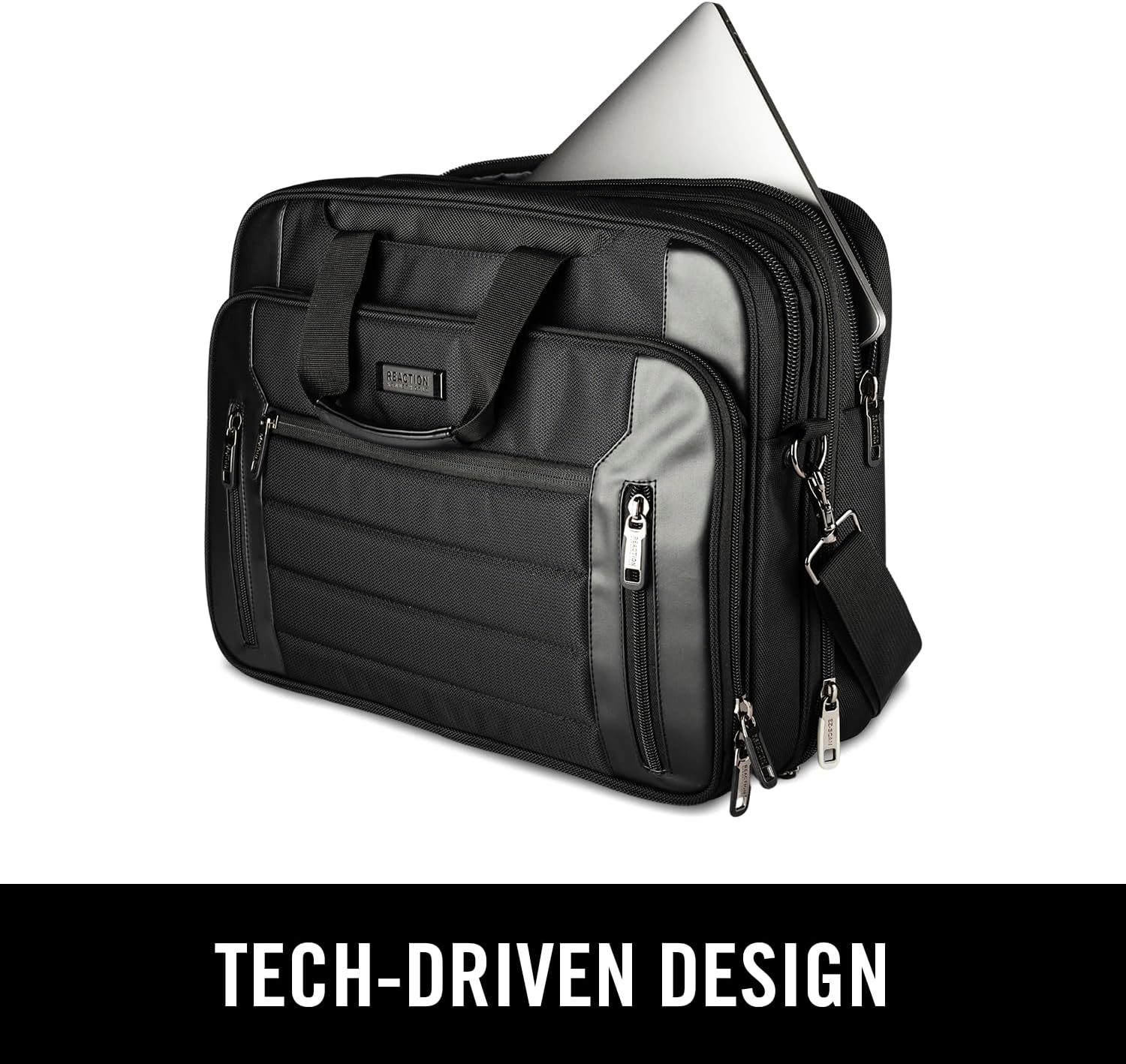 Kenneth Cole Reaction Keystone 1680d Polyester Dual Compartment 17" Laptop Business Portfolio, Black