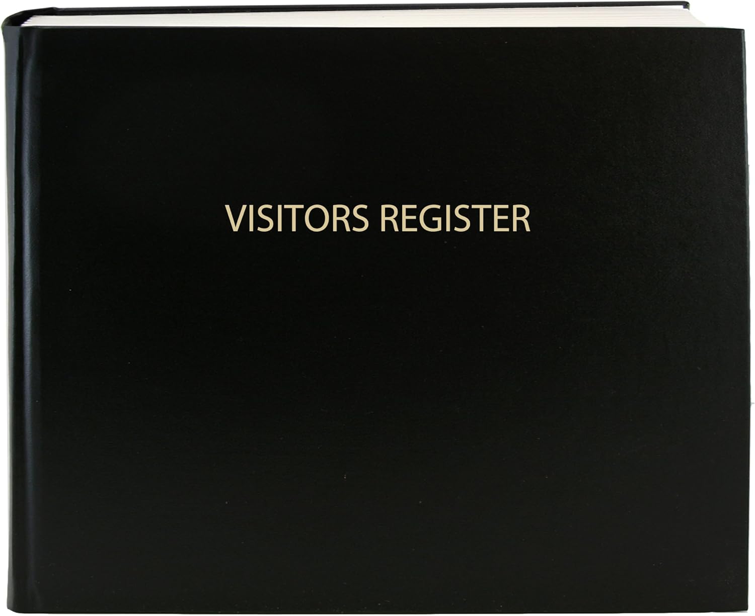 - Hardbound book with Black imitation leather cover and stamped with “VISITORS REGISTER”