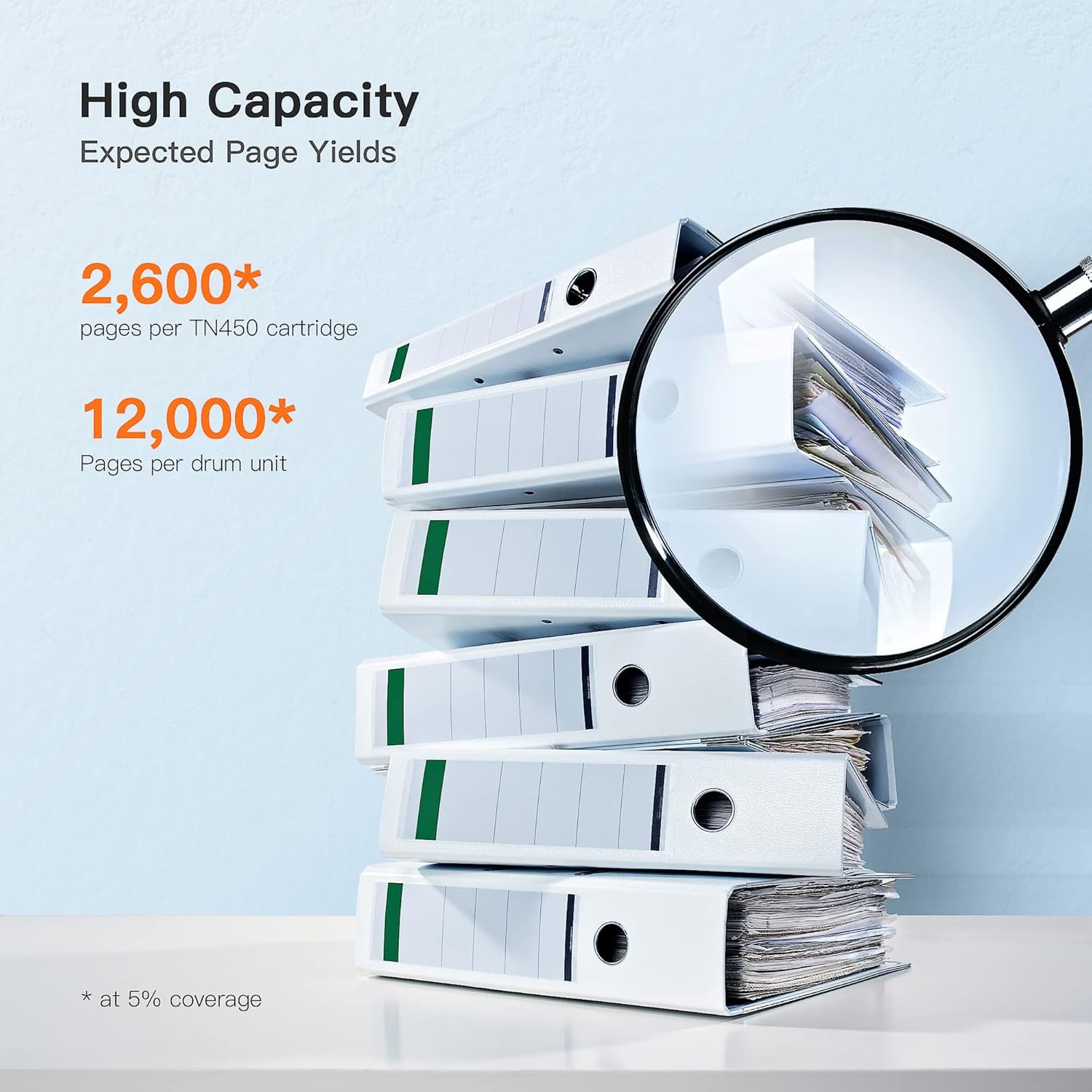 - Page Yield: Black is 2,600 pages per toner cartridge, and 12,000 pages per drum unit at 5% coverage