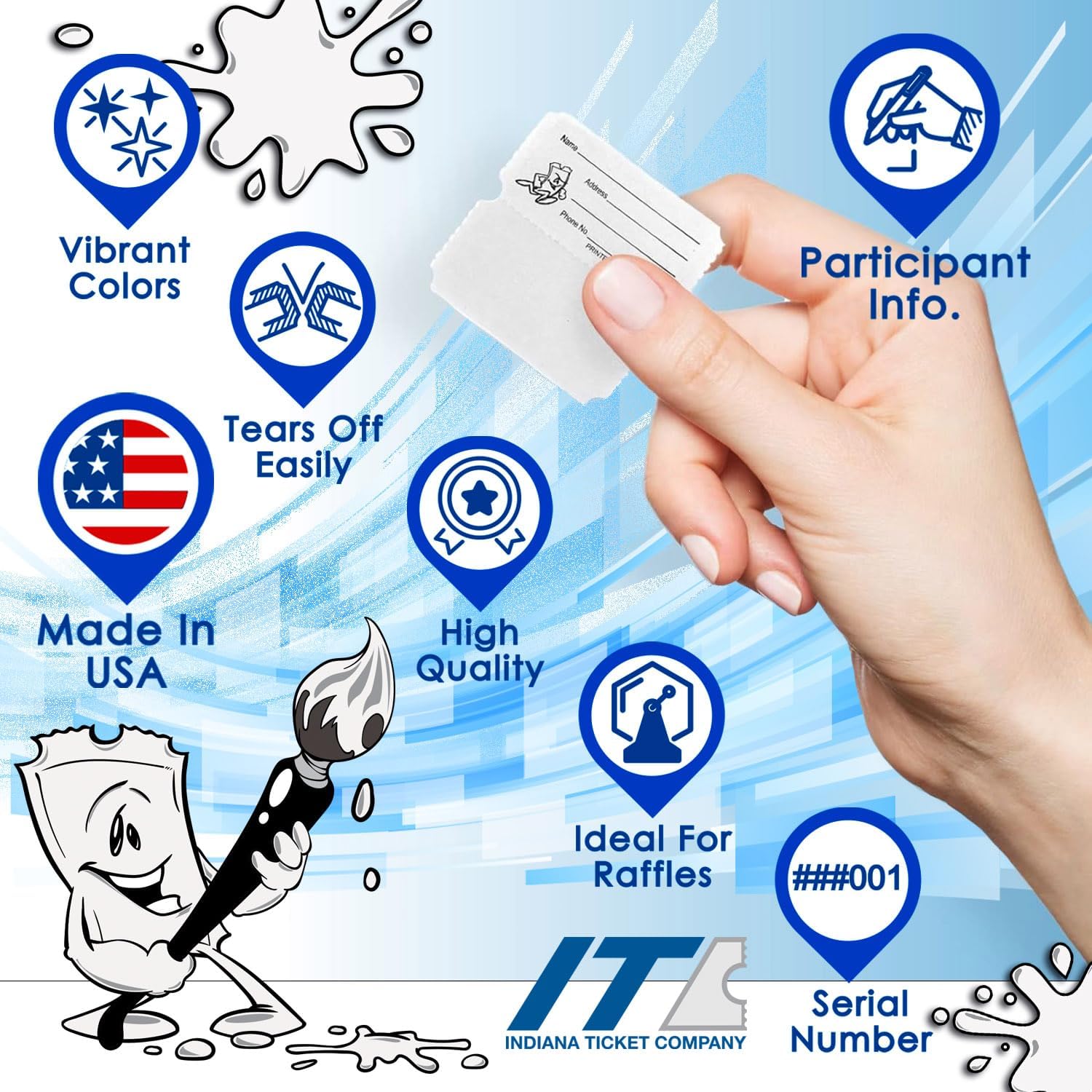 - HIGH QUALITY TICKETS – Indiana Ticket Co. raffle ticket rolls include 1,000 double stub raffle tickets for 50/50 raffles, giveaways, carnivals, drawings, door prizes, events, trade shows and more.