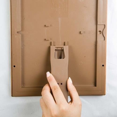 - GENUINE SNAP FRAME: Opti Frame is M&T Displays's patented (US 2009/211134) Snap frame which eliminates the flaws of standard snap frames. Instead of using plain back cover, we use textured durable plastic casing which has ready for wall mounting with 2 holes on both long sides. Wall hanging is also available with wall hanger holes placed on short and long sides. Optional counter support offers a new counter stand on portrait and landscape position.