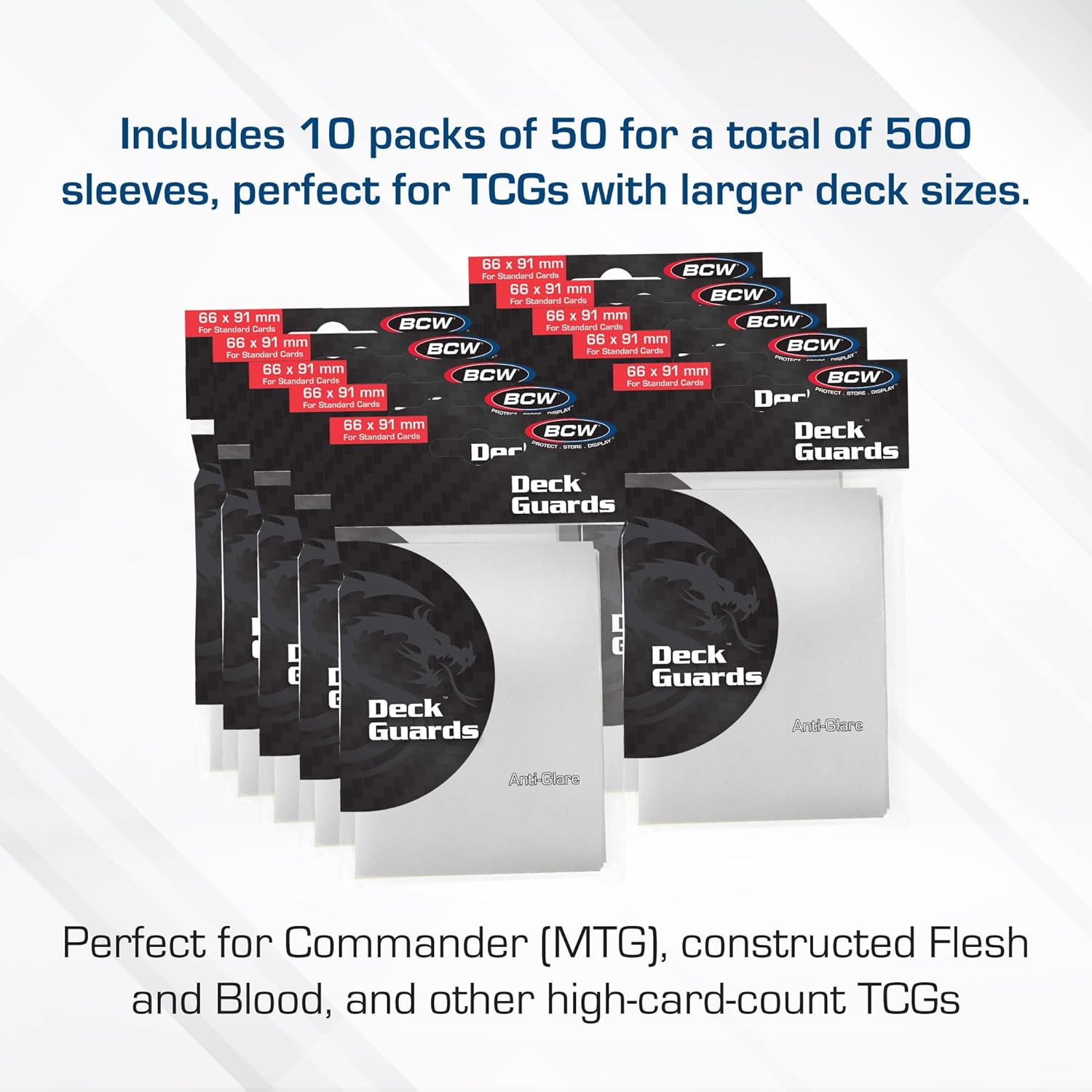 BCW Deck Guard - Double Matte Card Sleeves | 500 Count Box (10 Packs of 50 Sleeves) |Acid-Free, No PVC | Fits 2.5" x 3.5" Game Cards | Archival Safe Sleeves for Card Protection (White)
