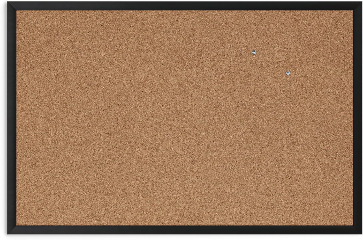 U Brands Cork Bulletin Board, 24'' x 36'', Black Wood Frame