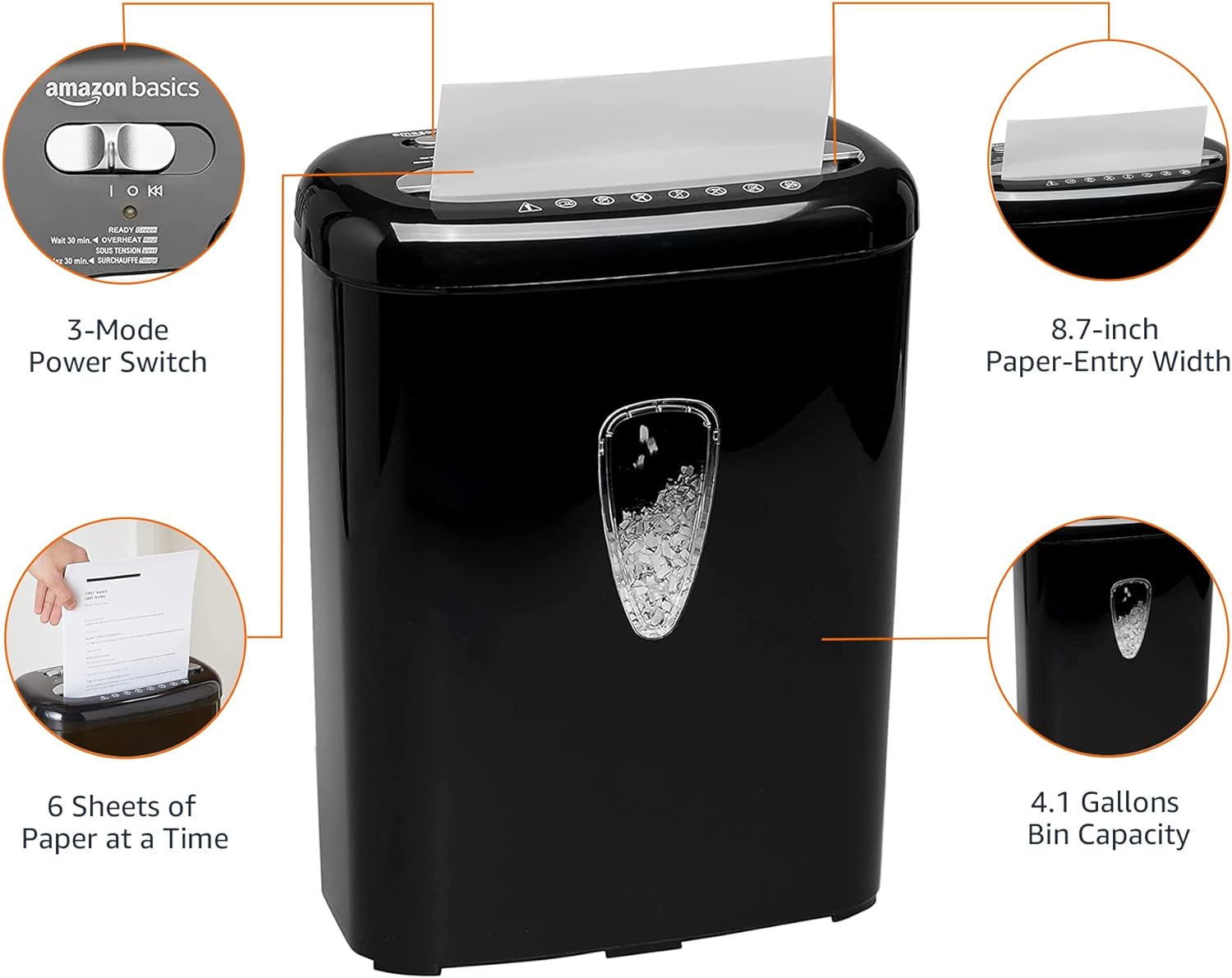Amazon Basics 6 Sheet High Security Micro Cut Paper and Credit Card Home Office Shredder, Black