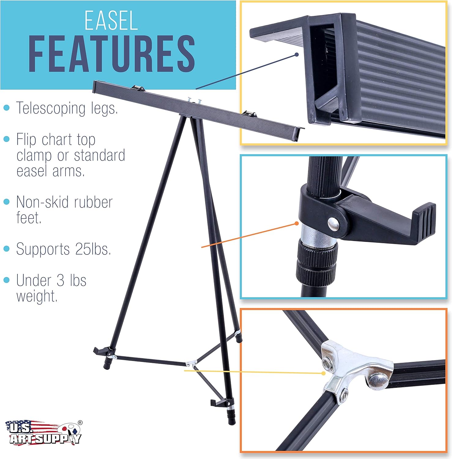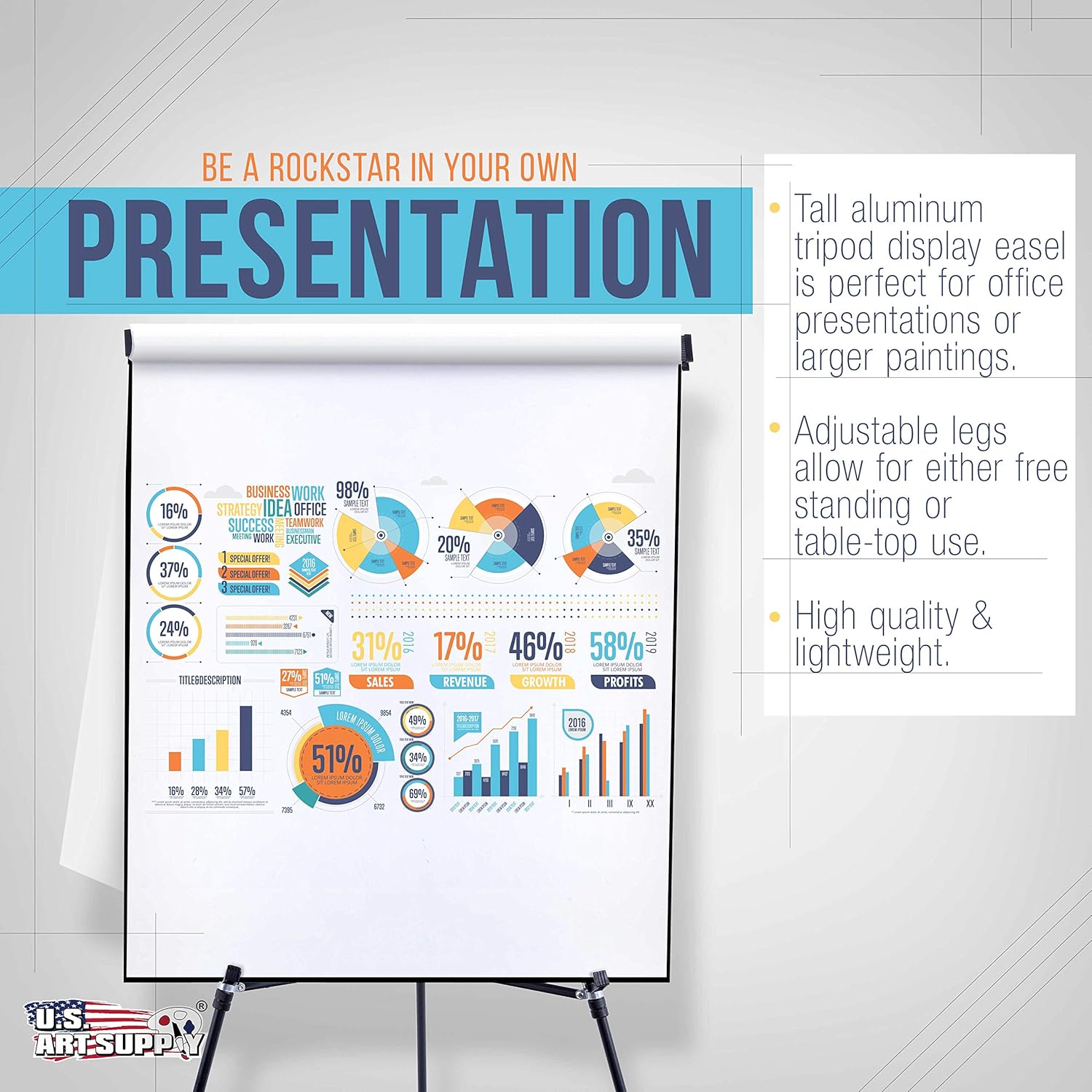 U.S. Art Supply 66" High Boardroom Black Aluminum Flip Chart Easel & Presentation Stand - Adjustable Floor/Tabletop, Portable Tripod, Holds 25 lbs., for Chart Paper, Poster Boards, & Pads