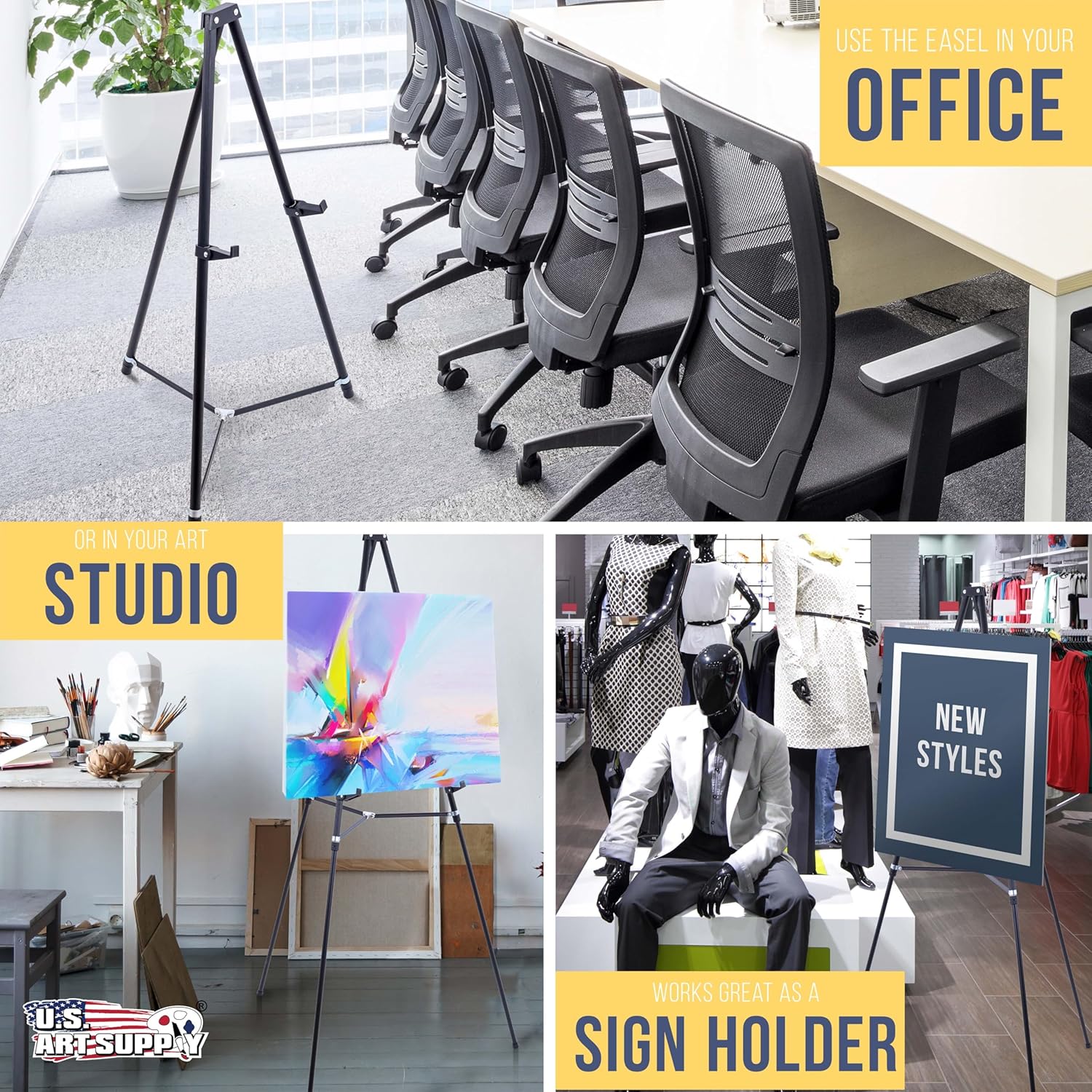 U.S. Art Supply 66" High Black Metal Display Art Easel - Large Adjustable Height Portable Easel Stand, Sign Display, Holds 25 lbs - Floor & Tabletop Easels, Sign Stand