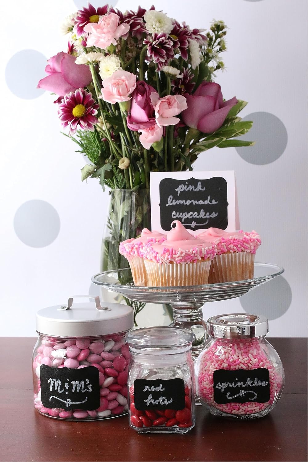 - ⬛ CLASSIC STYLE Cestari fancy chalk labels add a classic look to your home in the kitchen, bath, craft center, toy room, and more, as well as add flair to party and wedding favors and decorations. Cestari Labels lend the appearance of blackboards, with the convenience and ease of stickers that can be erased and reused.