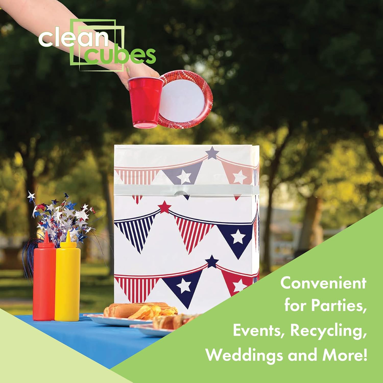 - ✅【EFFORTLESS CLEANUP & DISPOSAL】Simply unfold, use, and toss — keep your event clean and mess-free without extra effort. Clean Cubes are disposable recycling bins and trash cans with a patent-protected design and custom-fitted trash liner in each bin.