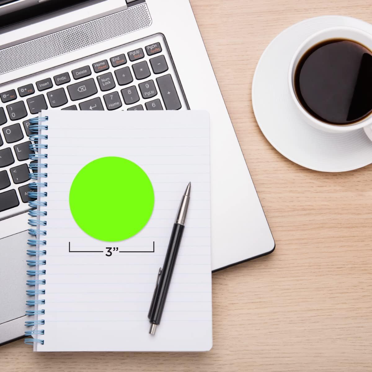 ChromaLabel 3 Inch Round Sticker Labels, High Visibility Permanent Sticky Dots Color Coding Label, Easy to Write On Color Coded Stickers - 500 Colored Labels per Roll - Matte Finish Fluorescent Green