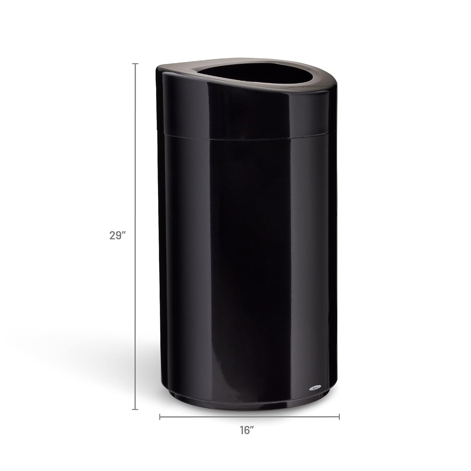 - MODERN STYLING. Safco Open Top Trash Receptacle with Liner combines contemporary styling with hands-free disposal to create a high capacity trash can ideal for offices, lobbies, reception areas and entryways.
