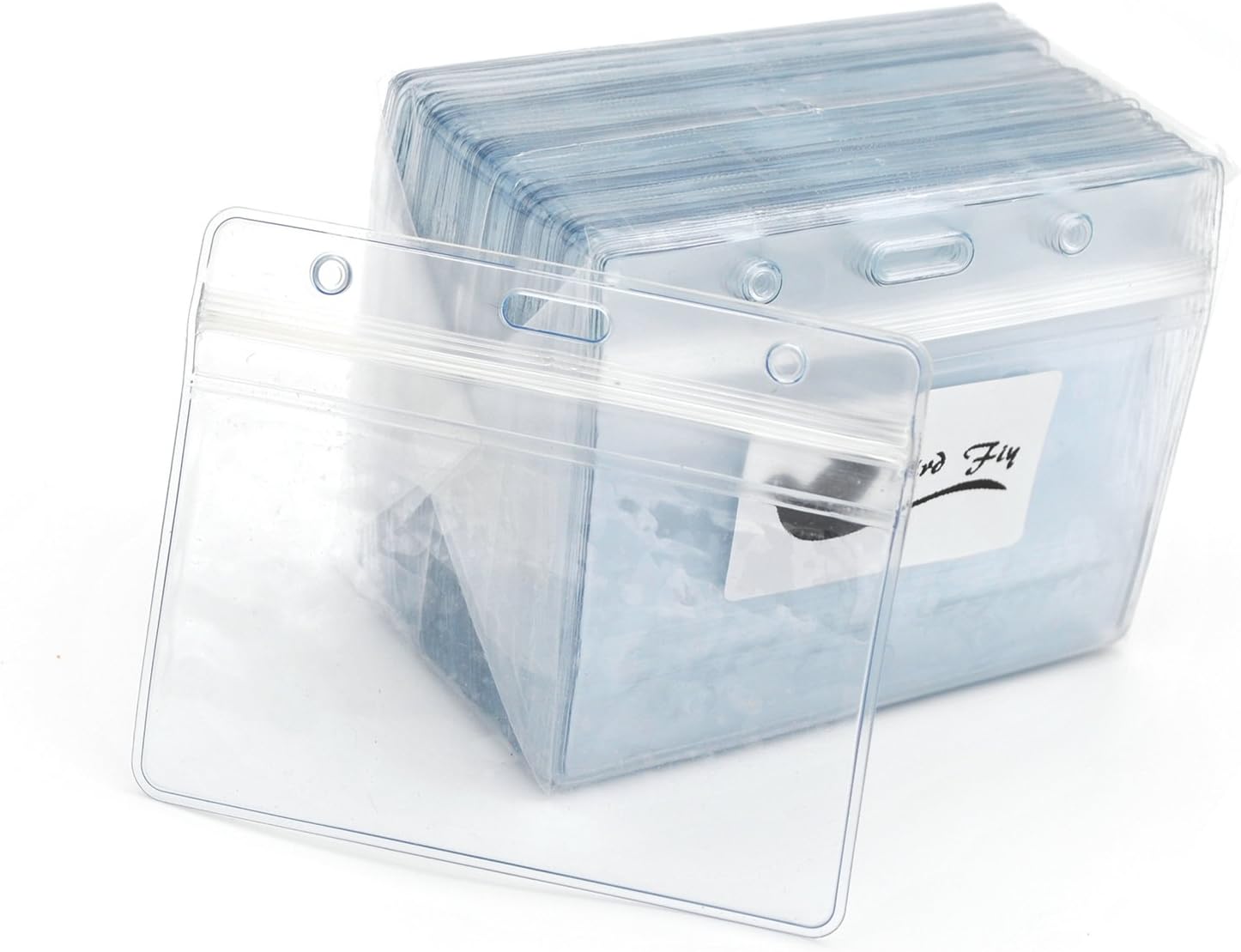 - WATERPROOF, DURABLE, REUSABLE, RESEALABLE: ID & Name card holder pouch is made of flexible, clear, waterproof, and tear resistant. Keep your Name tags, RFID badge, bus card, passes, hotel keys, your credit cards and employee badges SAFE, SECURE and DRY. Unlike other ID holders, our zip lock makes sure to keep everything dry and keep you worry free. No more worries about holes and tears caused by pins and clips.