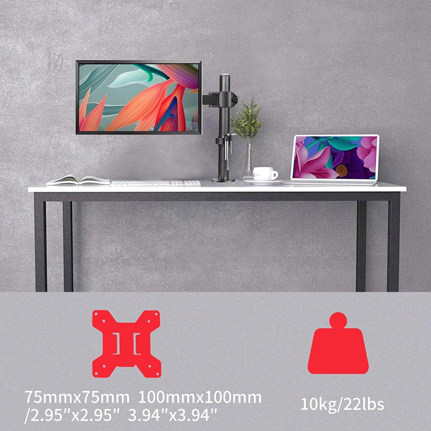 - Compatibility - Single monitor mount ideal for most 13" to 32" screens and up to 22lbs.With 75*75/100*100 VESA pattern.
