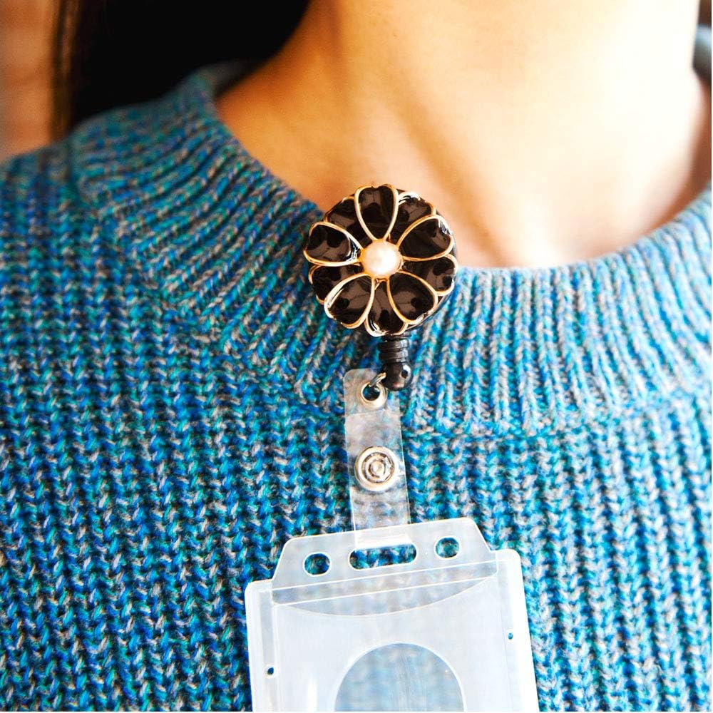 Retractable Badge Holder, ID Badge Reel with Pearl, 3 Pack (Black)