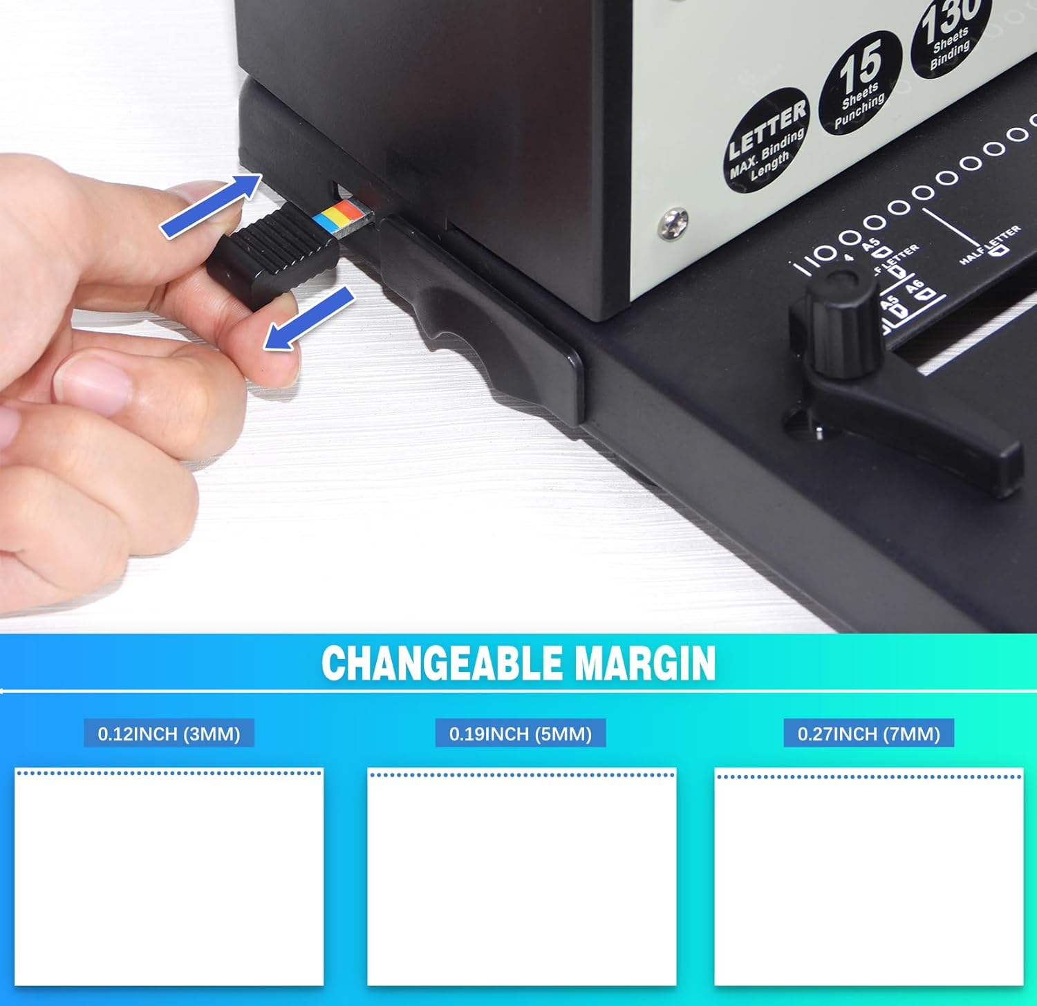 - Punch capacity: 15 sheets 80gsm (20lb); Binding capacity: Unlimited & Max. spiral binding ring size: Unlimited.