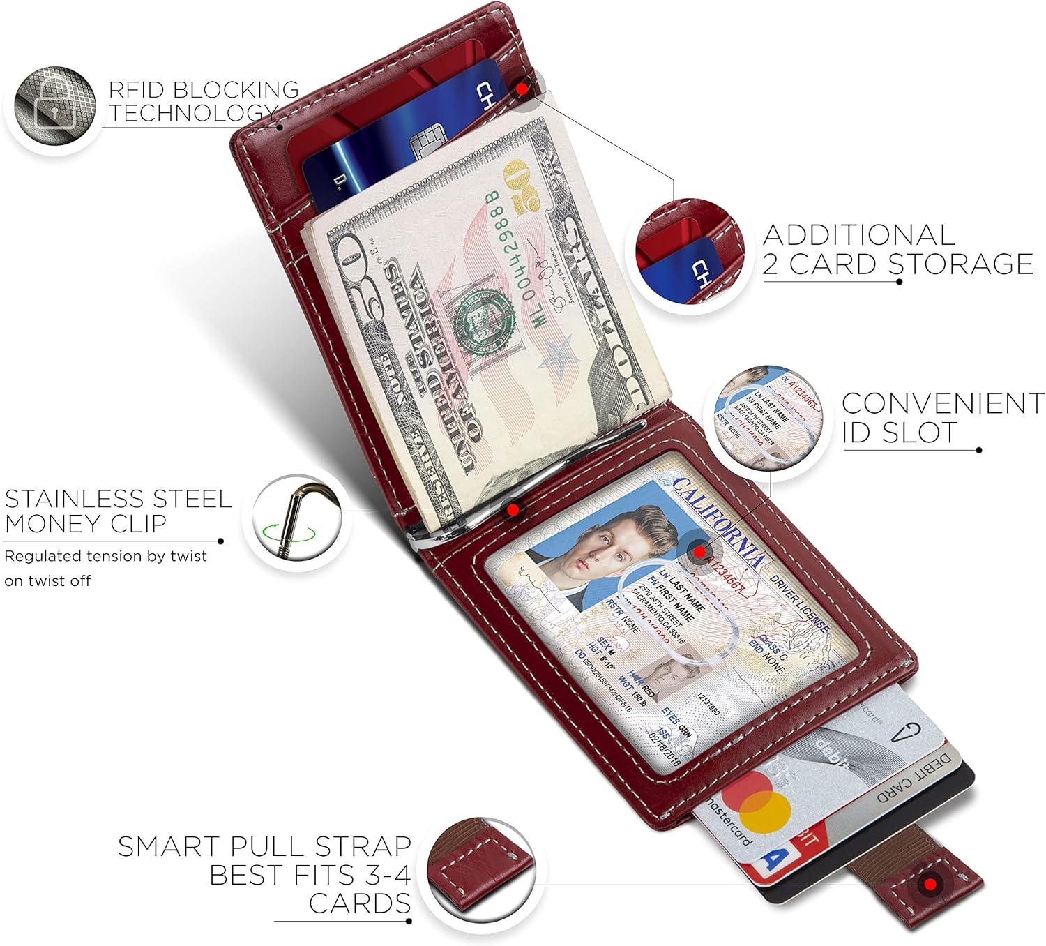 • HOW IT WORKS- At last! A wallet that will meet your everyday needs. The SERMAN BRANDS card holder is equipped with a front pocket made for your most used card. 2 pockets on the inside, with a photo ID slot, and a money clip to hold your cash. Wallet case also has smart pull-strap for quick access to your everyday cards.