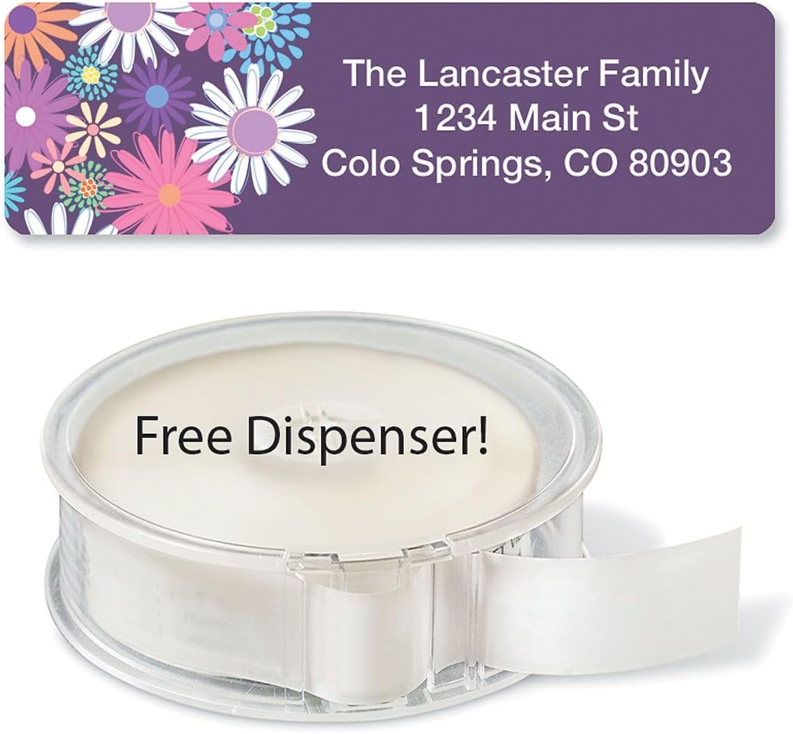 Colorful Images Petite Flowers Rolled Personalized Return Address Mailing Labels with Dispenser, Customize with Name & Shipping Address, 500 ¾” x 2½” Self Adhesive, Easy Peel Label Roll