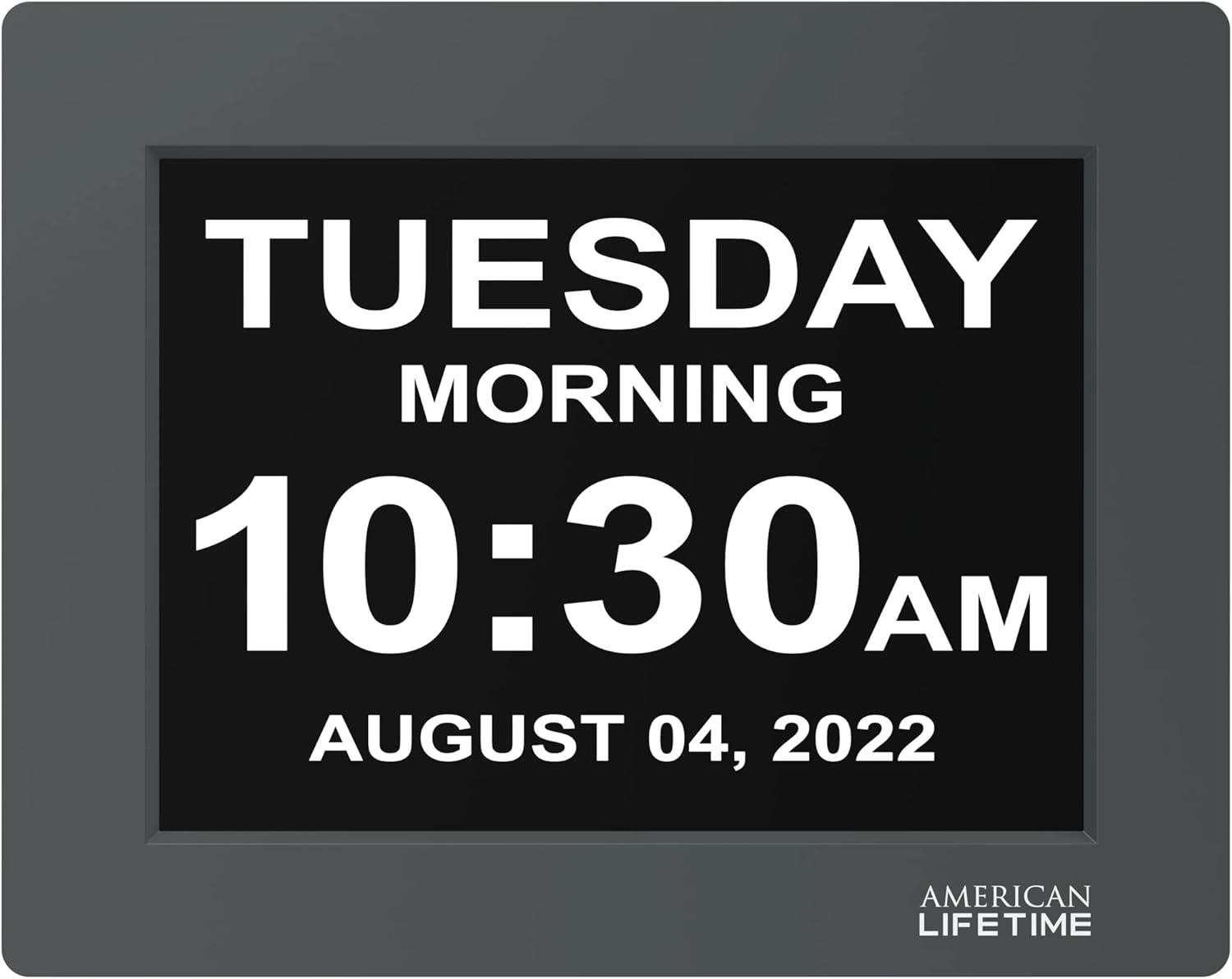 American Lifetime 【New 2024】 Dementia Clock Large Digital Clock for Seniors, Digital Clock Large Display with Custom Alarms, Clock with Day & Date for Elderly, Large Number Digital Clock Grey