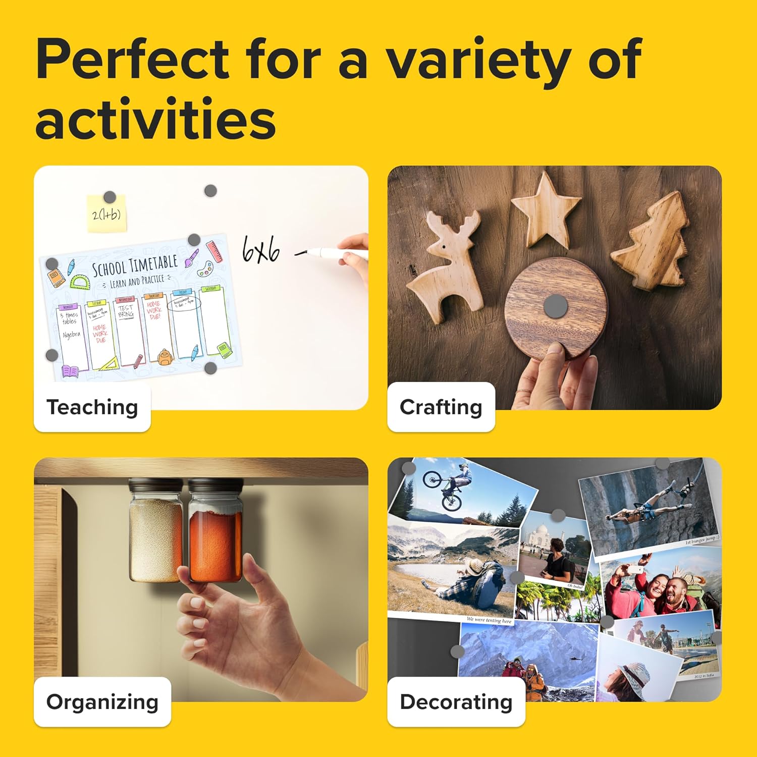 - STRONG MAGNETIC POWER: These magnets with adhesive backing are strong magnets that are prepared to stay. Our adhesive magnets are a great way to hang photos or to-do lists on your refrigerator.