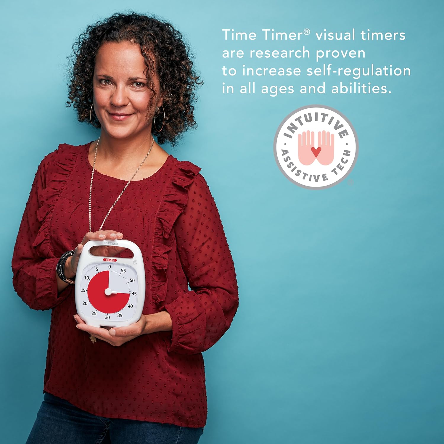 Time Timer PLUS 60 Minute Desk Visual Timer — Countdown Timer with Portable Handle for Classroom, Office, Homeschooling, Study Tool with Silent Operation (White)