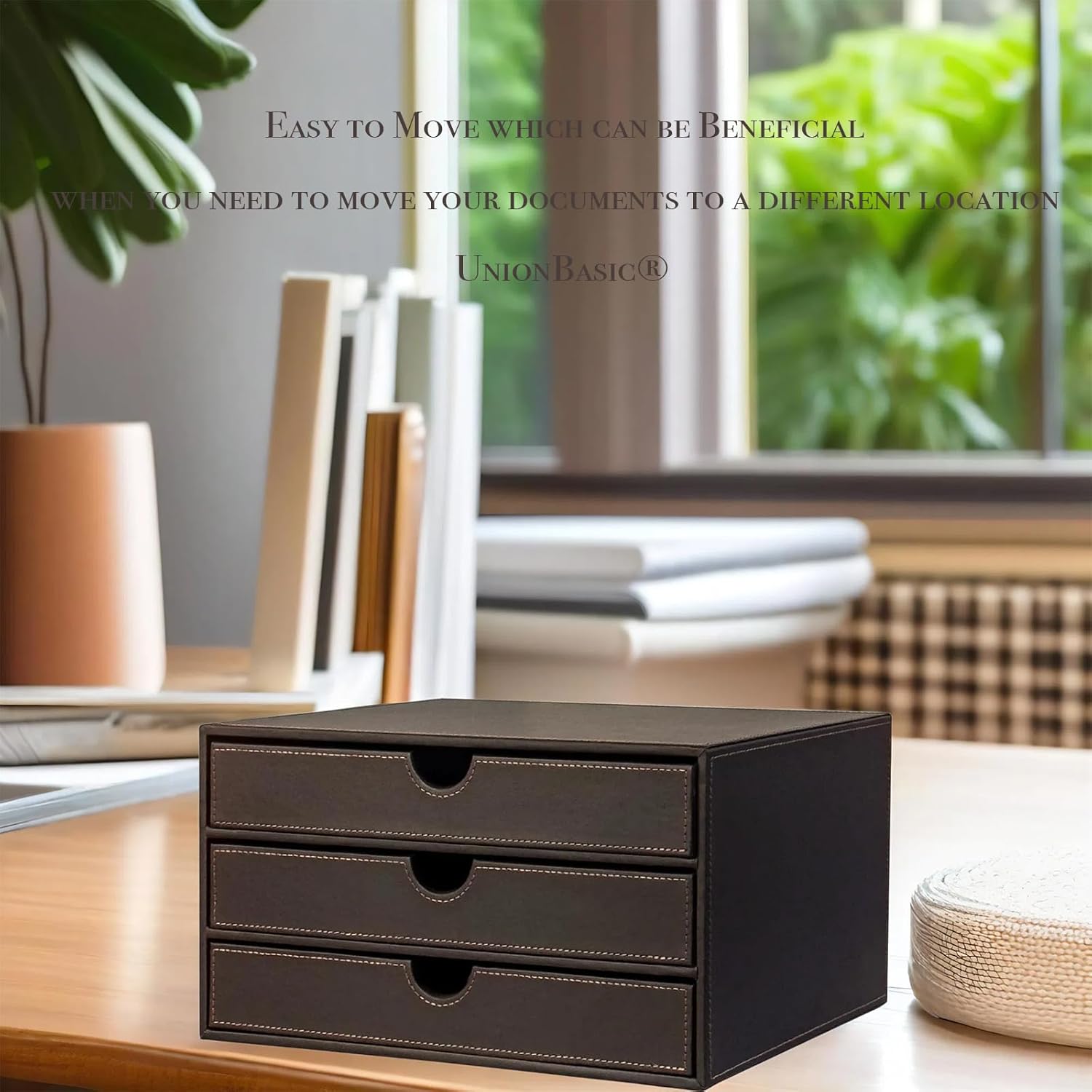 UnionBasic Leather Desktop Drawer Organizer, File Cabinet Magazine Document Holder, Office Supplies Desk Storage Organizer Box, 3 Drawer, Coffee