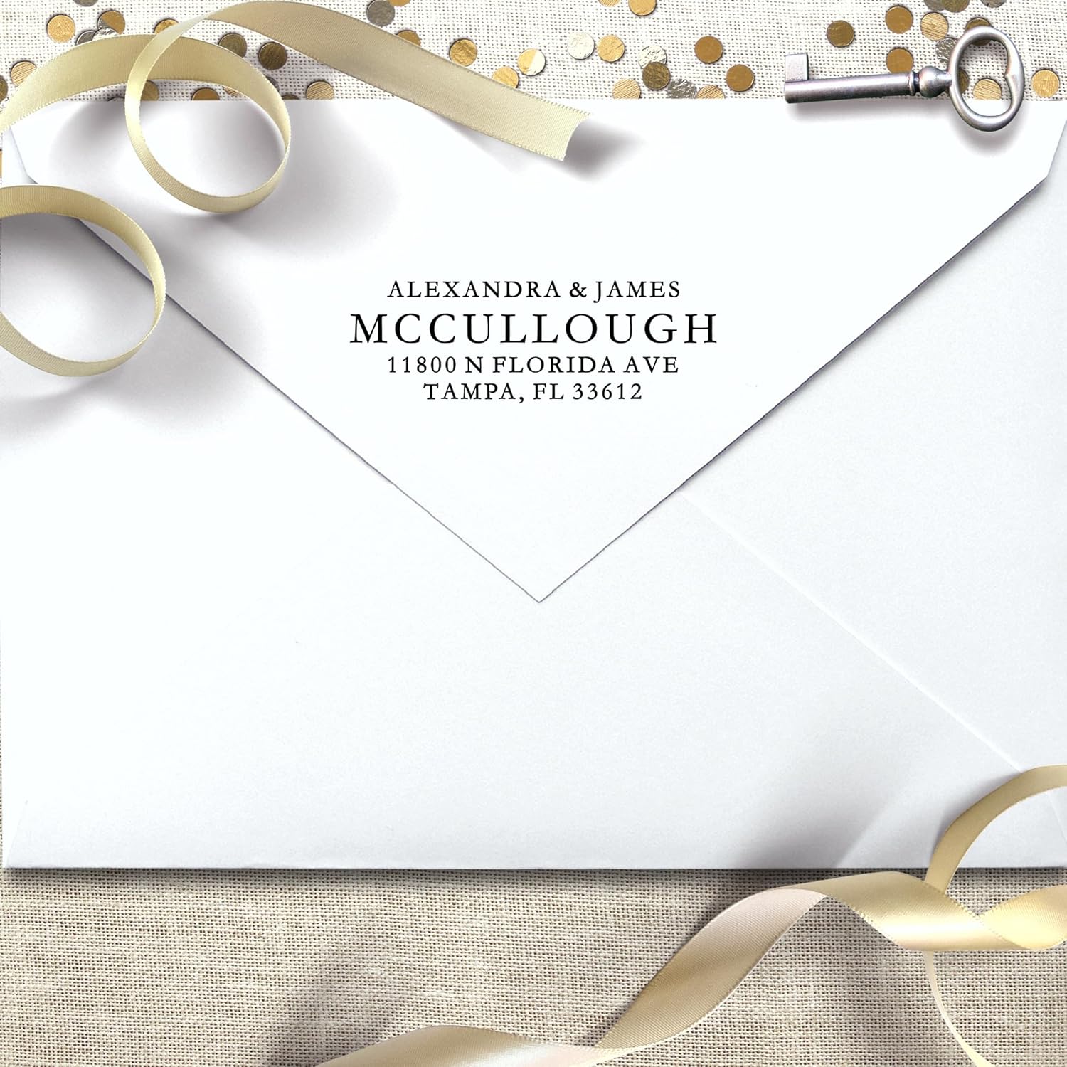 Self Inking Return Address Stamp - Custom 4 Line Personalized Address Stamp for Envelopes, Wedding Invitations, Business, Mailing Labels, Black Ink (All Serif)