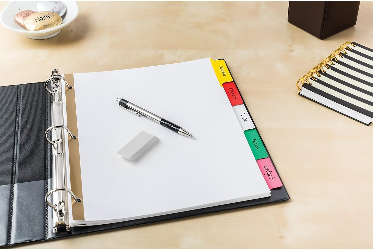 - Make changes quickly and easily by writing directly on binder dividers with tabs with a ballpoint pen or pencil and erase as needed
