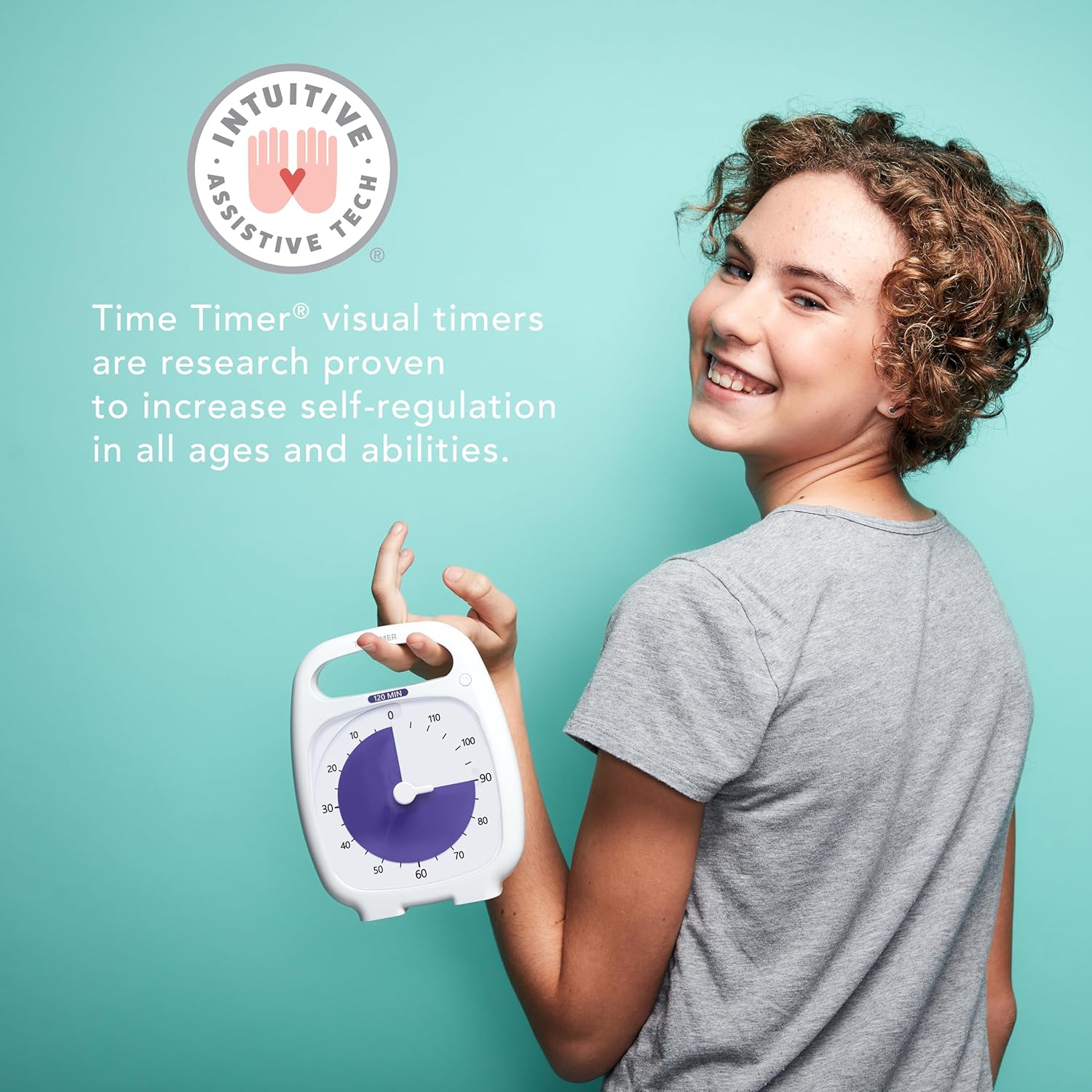 TIME TIMER PLUS 120 Minute Desk Visual Timer Countdown Timer with Portable Handle for Classroom, Office, Homeschooling, Study Tool, with Silent Operation (White)