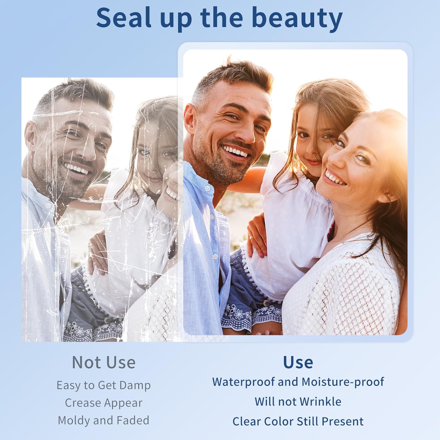 - Practicality: Photos using laminated pouches can maintain bright colors and do not fade. It can be waterproof, anti scratch and prevent dirt.