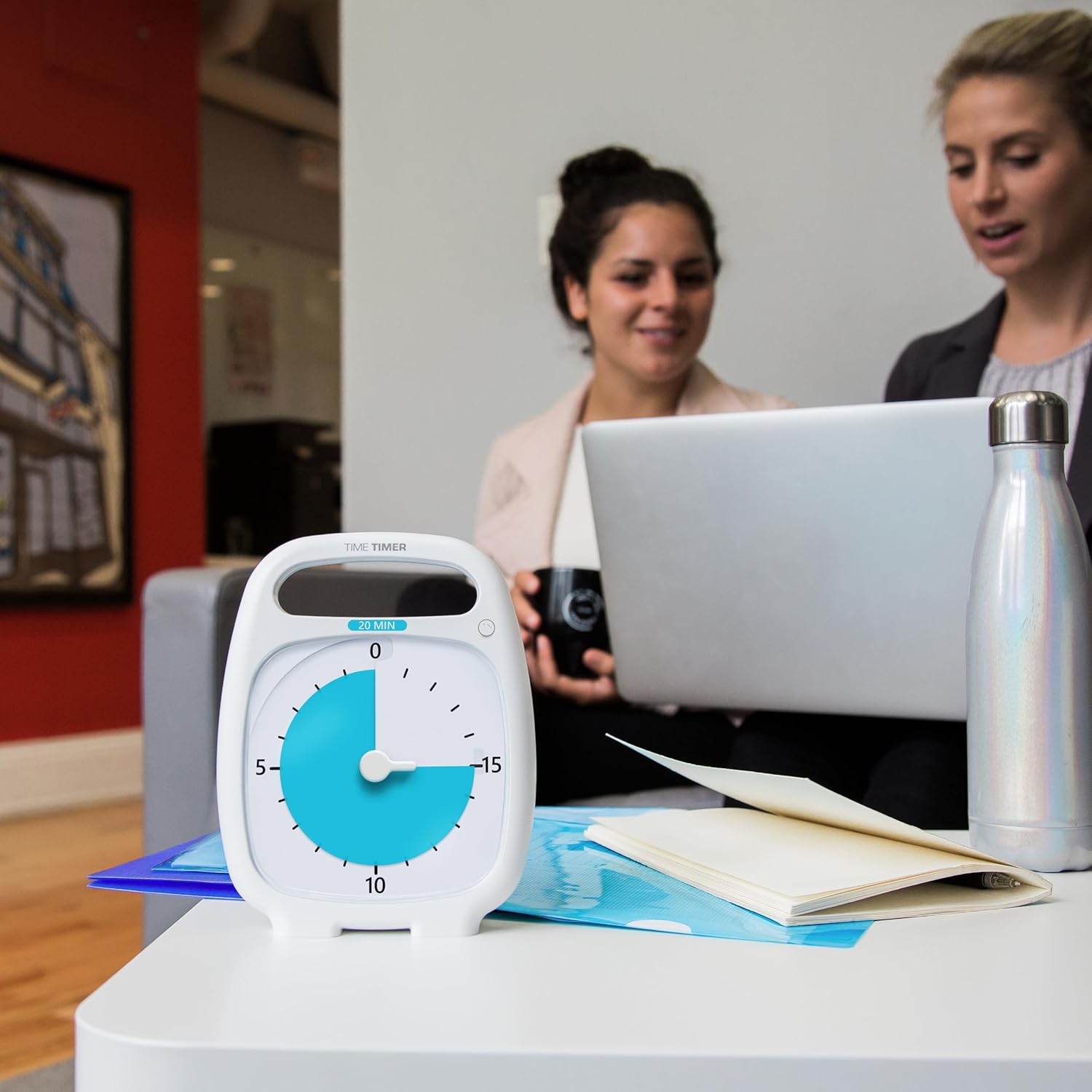Time Timer PLUS 20 Minute Desk Visual Timer — Countdown Timer with Portable Handle for Classroom, Office, Homeschooling, Study Tool with Silent Operation (White)