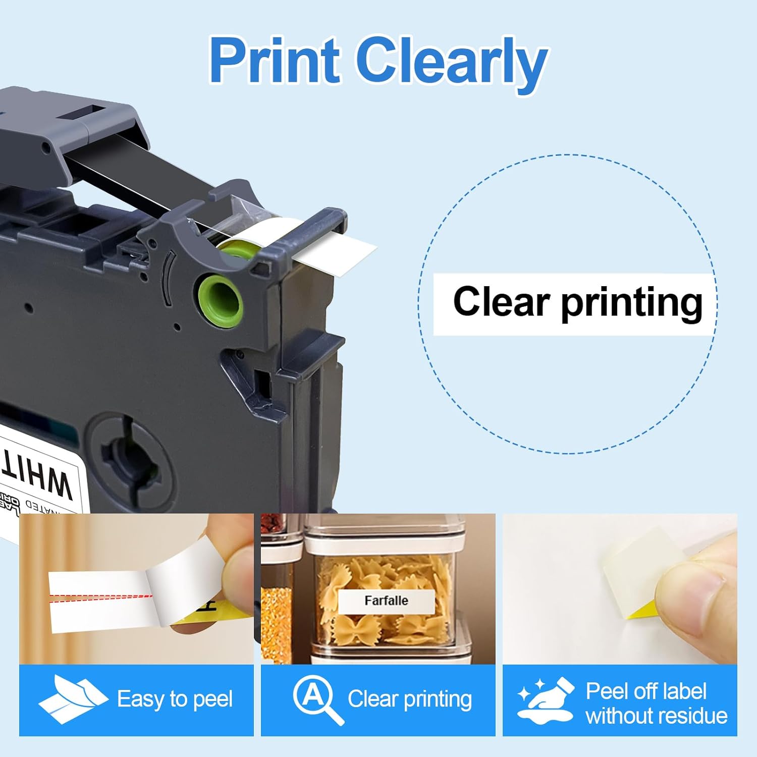 - Easy to Peel: P-touch clear tape has a unique split back,it makes the laminated tape easy to peel and apply.It won’t leave a sticky residue when they are removed, no gum left after peel