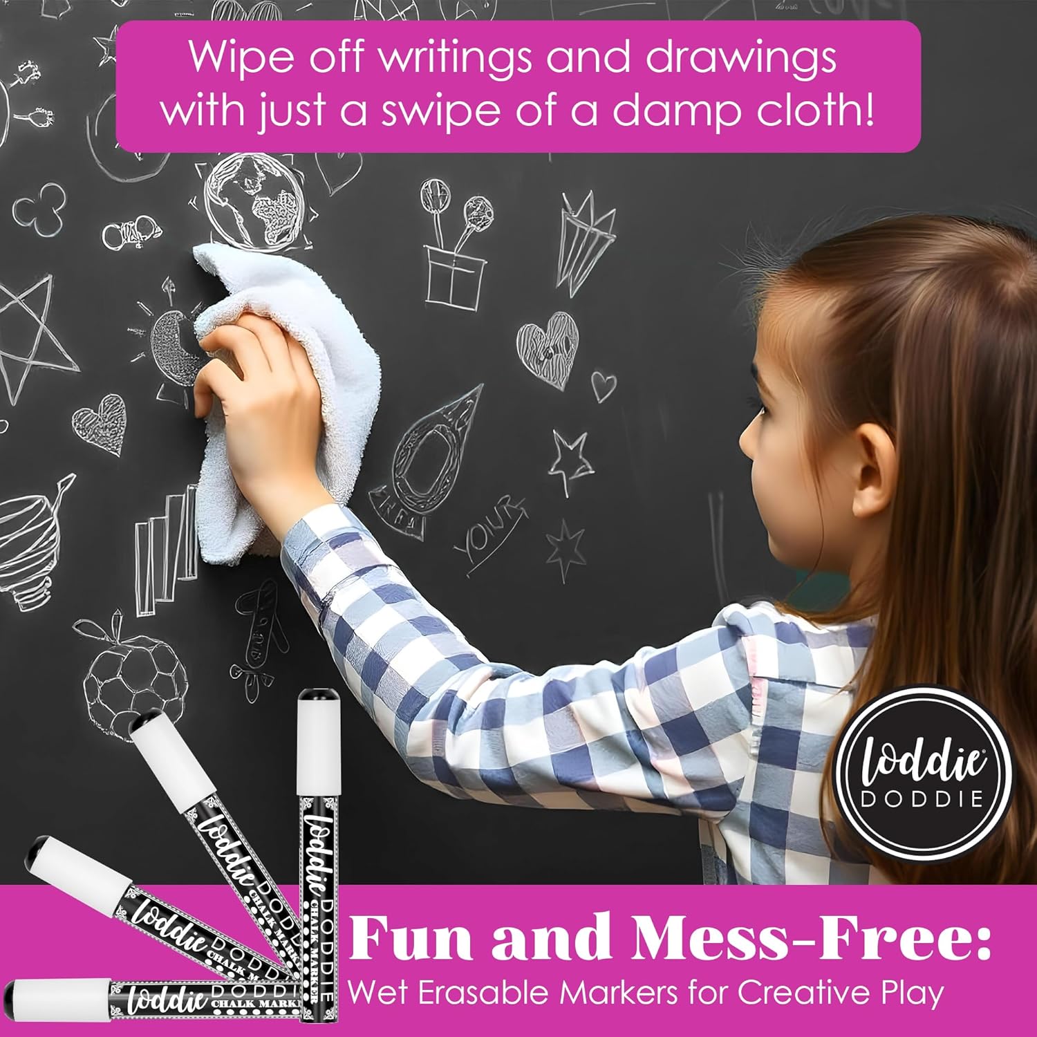 - Easy Cleanup: Loddie Doddie chalk markers white inked wipe off easily with a damp cloth—making mess-free decoration a breeze. These white chalkboard markers are perfect for all your holiday decorating needs. This white chalk pen pack works on blackboards and windows