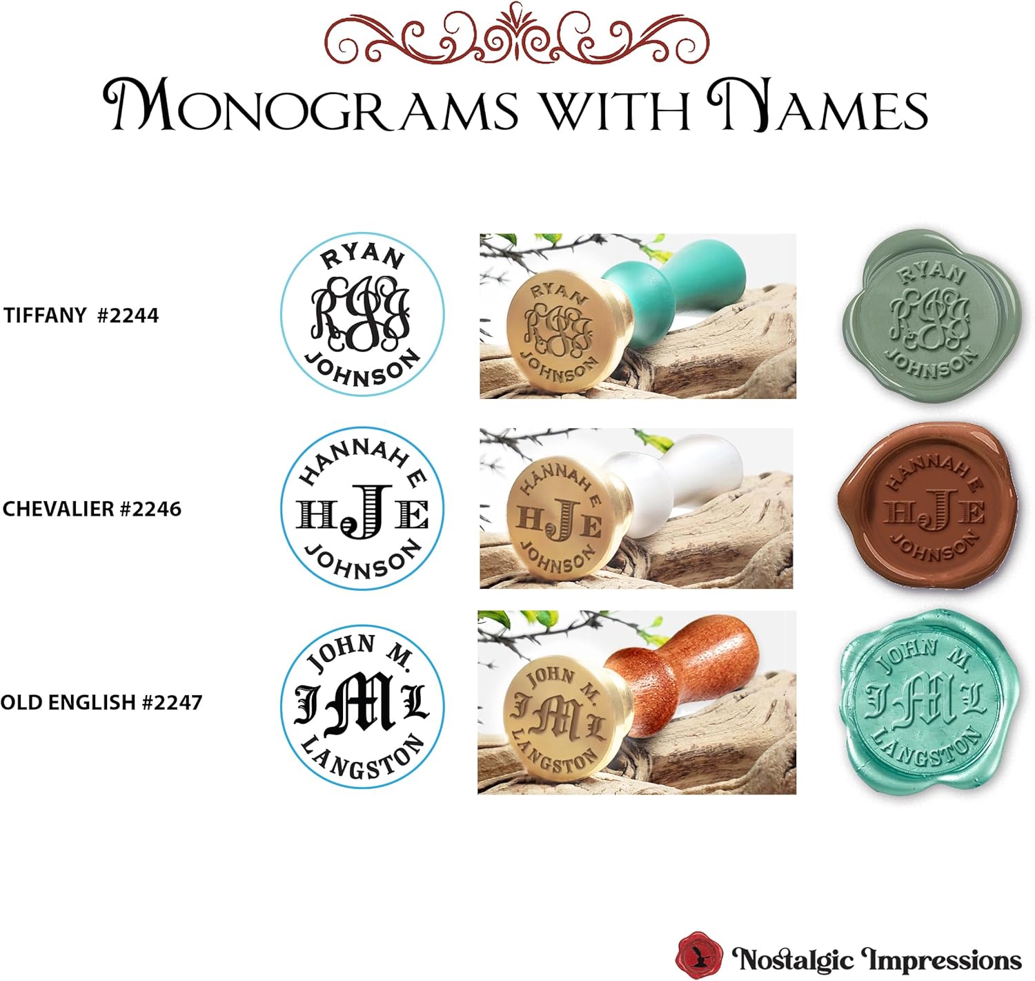 - Monogram Custom Wax Seal Stamp features optional Wood Handle and removeable Brass die plus Sealing Wax options with full instructions.