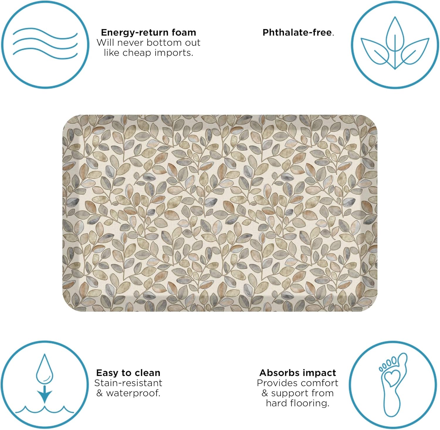 - THICK, SUPPORTIVE ERGO-FOAM CORE: This anti-fatigue cushion mat for standing features a 3/4’’ thick ergo-foam core which can provide excellent support and prevent feet, legs and back pain.
