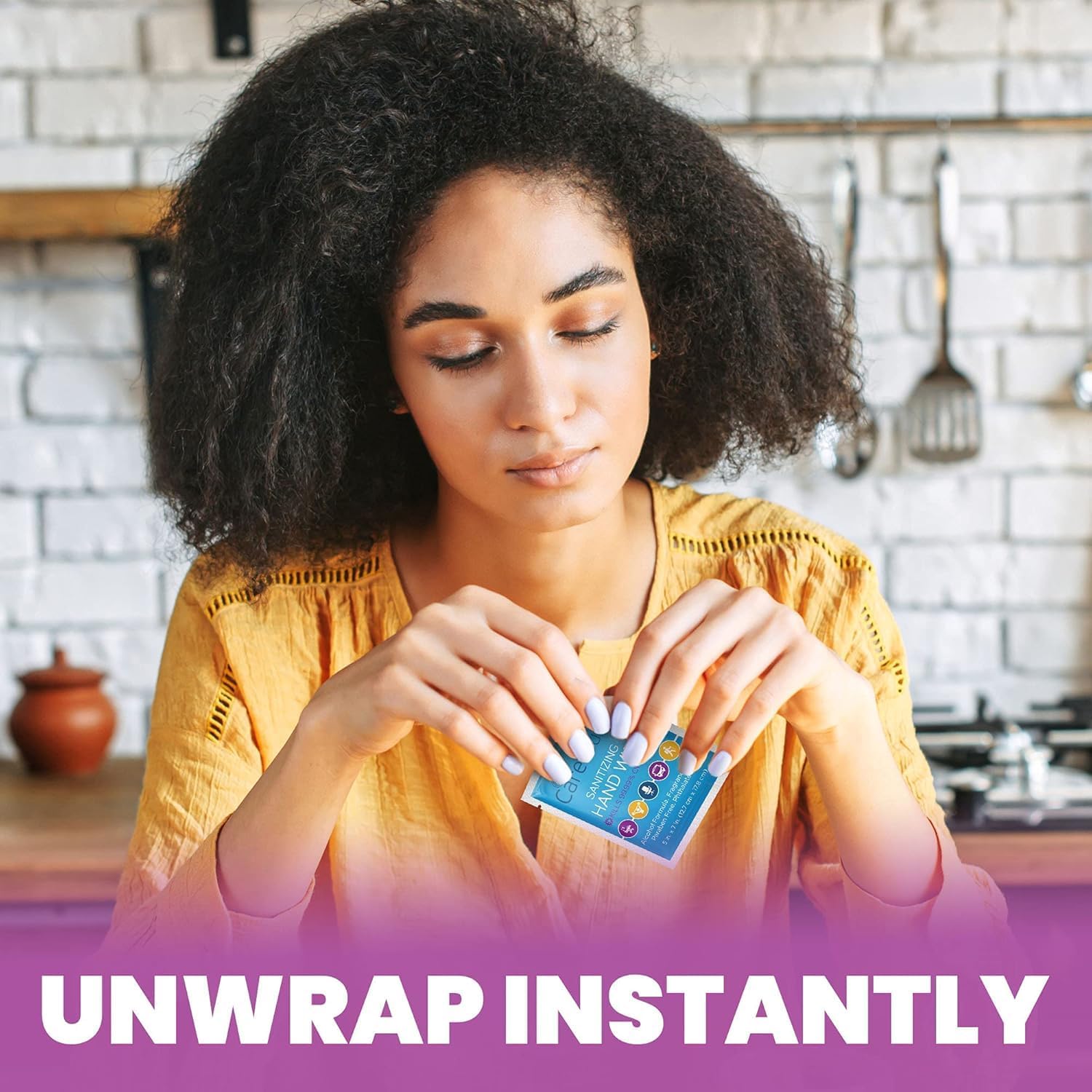 Care Touch Hand Sanitizer Wipes - 110 Hand Wipes Individually Wrapped - Travel Size - Sanitizing Wet Wipes for Home, Office & Outdoor Use