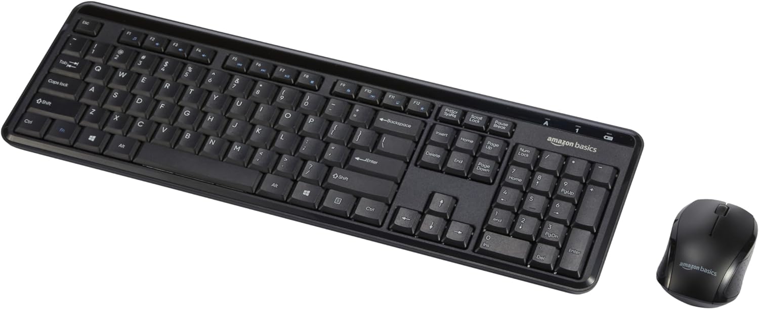 Amazon Basics 2.4GHz Wireless Keyboard and Mouse Combo, Quiet and Compact US Layout, Unifying USB Receiver, Black