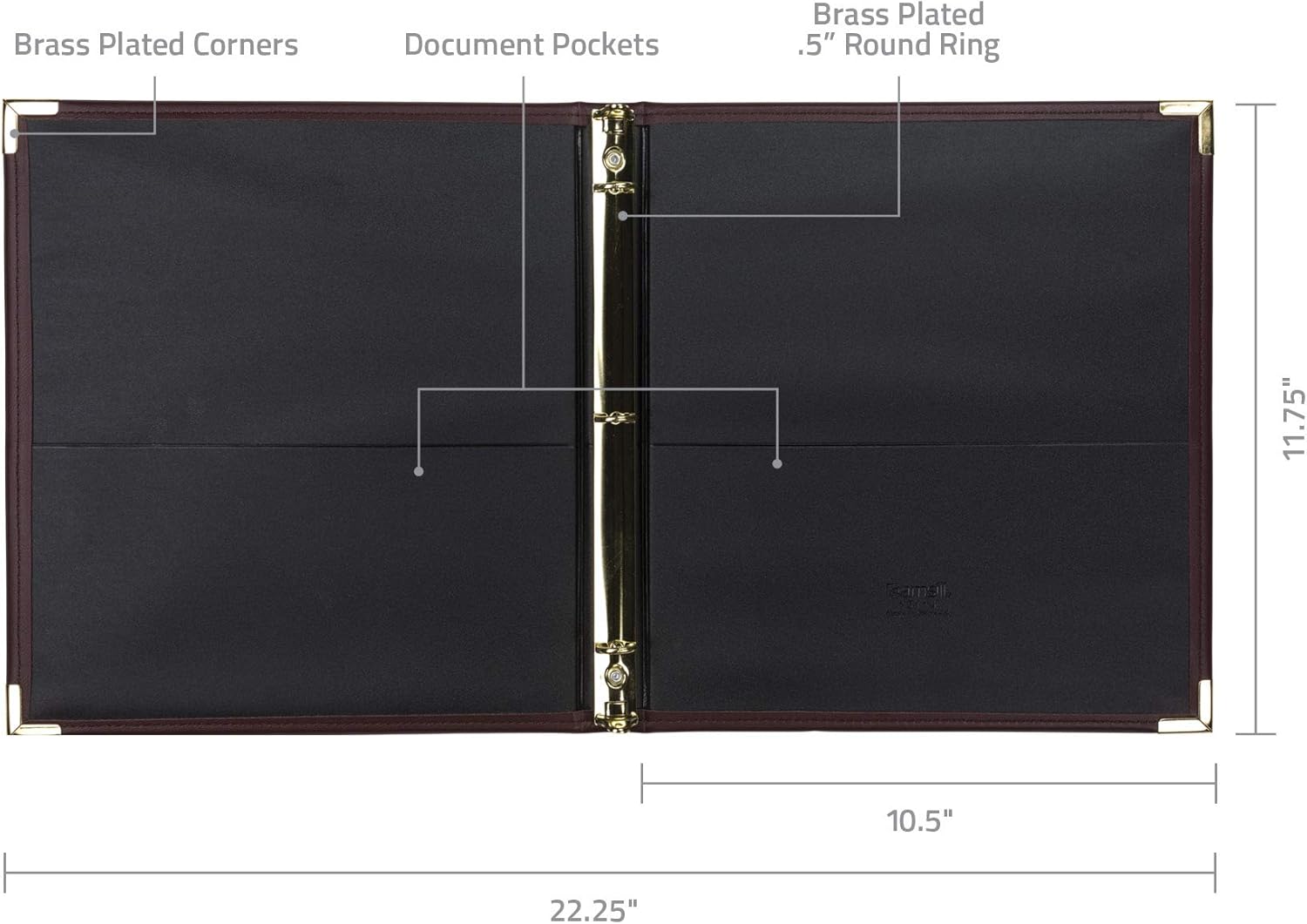 - Expertly Crafted: Leather-like material, hand-stitched edges, brass-plated metal rings and corners lend a clean, professional, and upscale appearance to this binder organizer