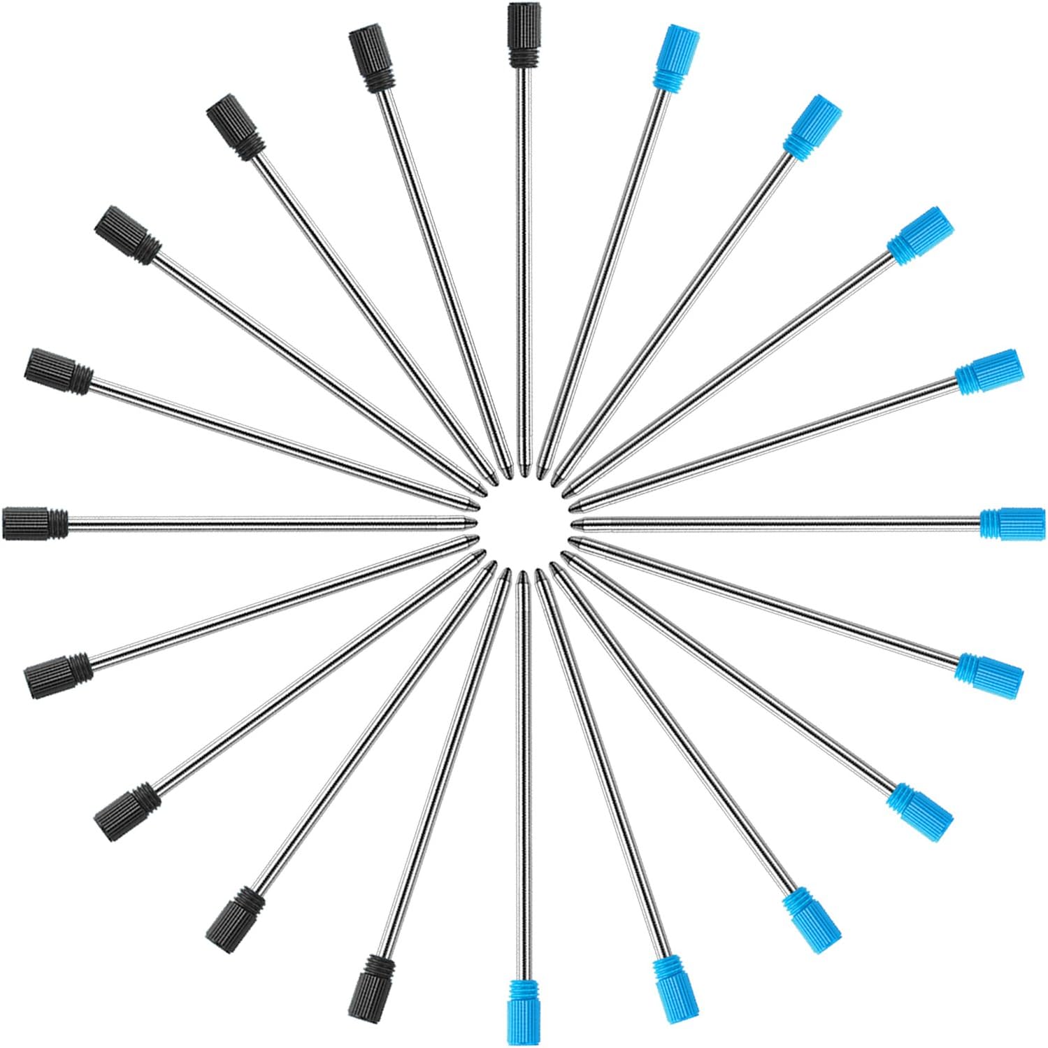 TecUnite 20 Pieces 2.75 Inch Ballpoint Pen Refills for Diamond Crystal Stylus Pens with Black Velvet Bag Supplies(Black and Blue Refill)
