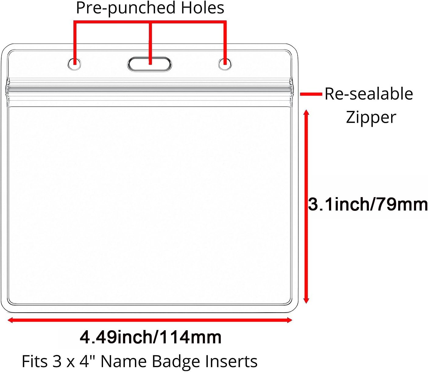 - Quantity:12,(one free,A total of 13 per package. ).💪 LARGE SIZE – Clear plastic ID pouch/sleeve Inner Dimensions: 3.2 " W x 4.5 " L . fits 3x4 inch nametag inserts for office, school, or social events