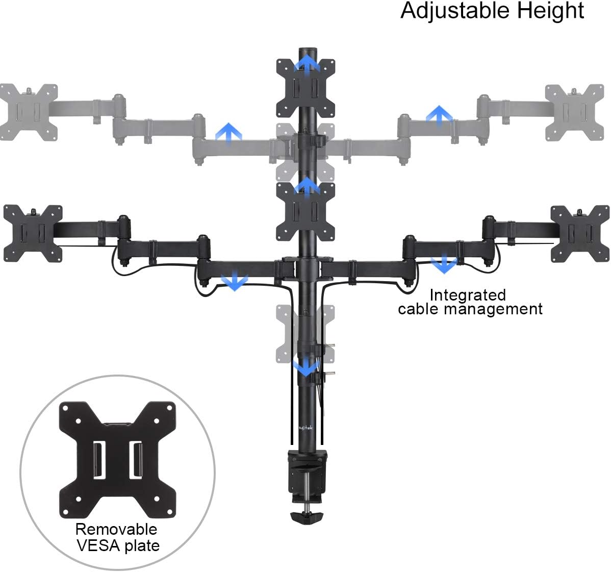 - Compatibility - Quad monitor mount ideal for most screens up to 27" (not for three 27"curved monitors in horizontal position) and 22lbs each with 75x75mm or 100x100mm backside mounting holes.