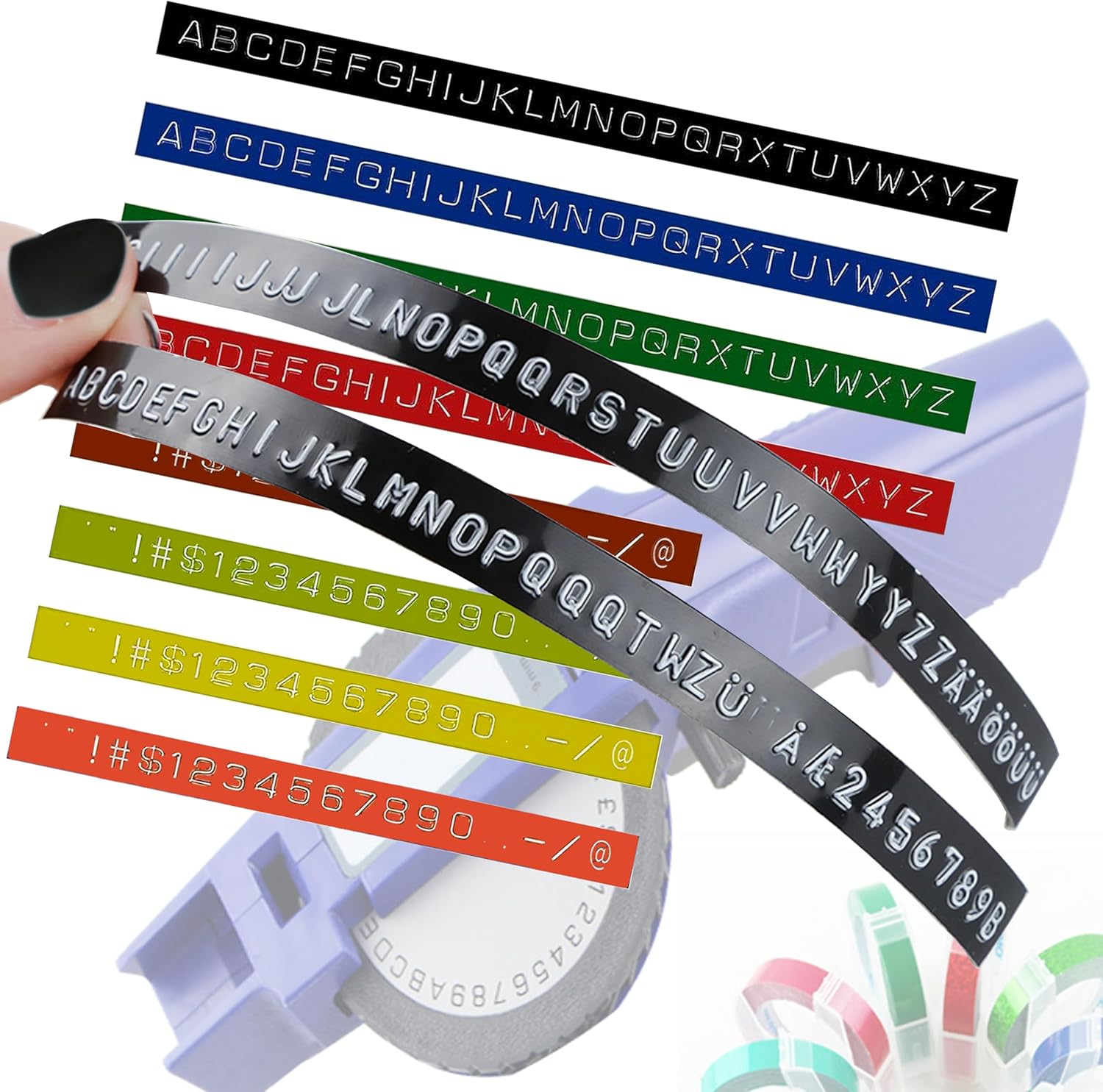 Label Maker Tape Compatible with Dymo Embossing Label Maker, 1/2''x 9.8' Colorful 3D Plastic Office Mate II Tape Compatible with Dymo Embossing 35800