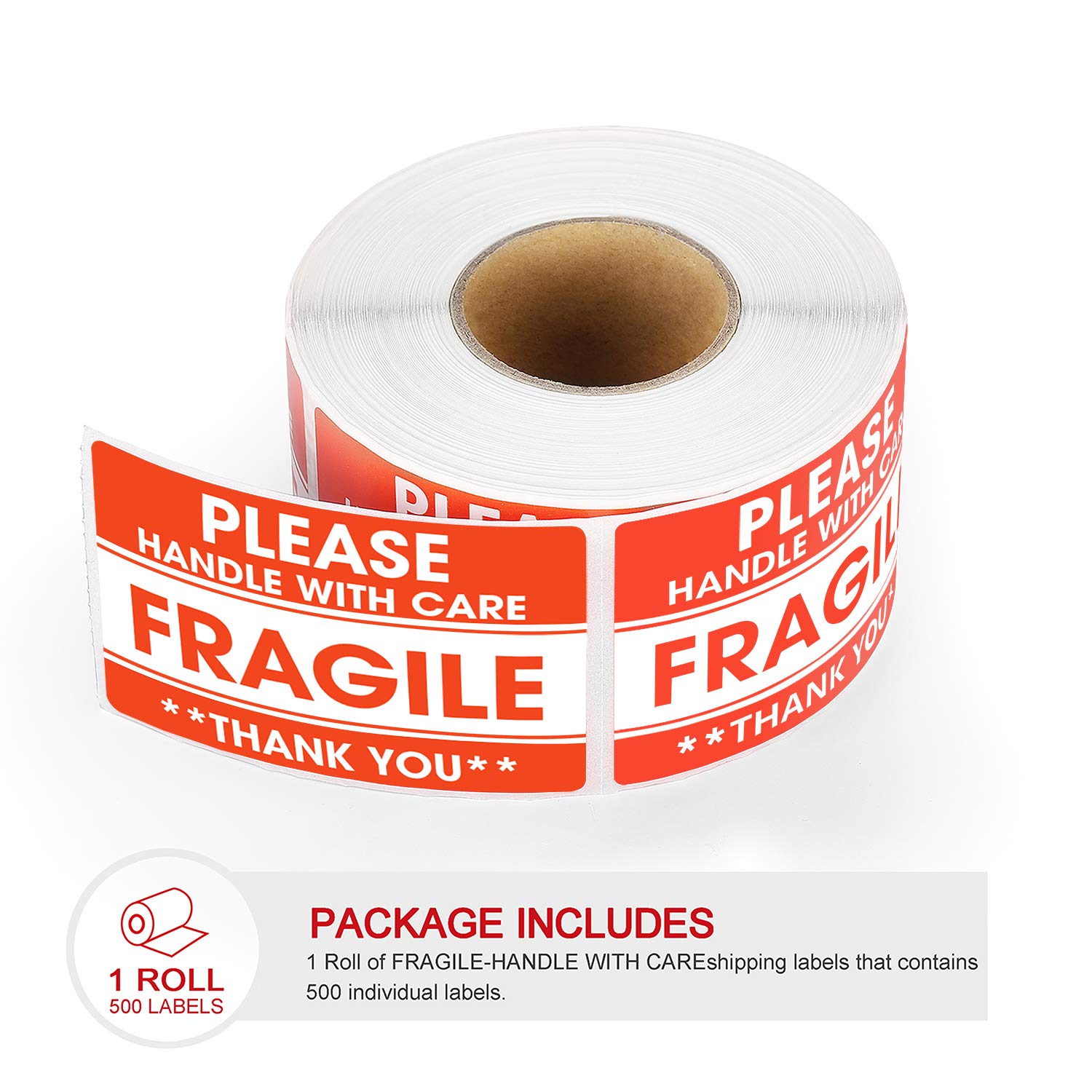 Methdic 2"x 3" Fragile Stickers 500 Labels Per Roll Strong Adhesive (Handle with Care,Do Not Drop,Thank You) Labels for Shipping and Moving