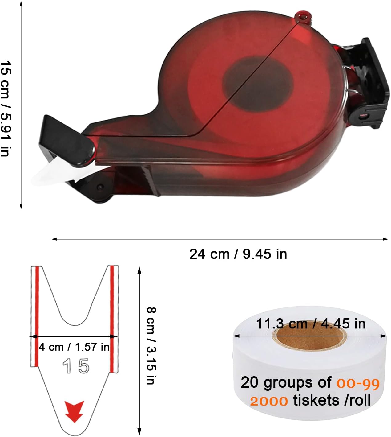 - Ticket dispenser with ticket roll from 00-99, 2000 tickets per roll.