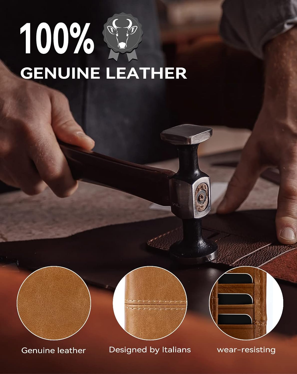 - Genuine Leather: Crafted from premium cowhide leather, our wallet is soft and smooth to touch. The exquisite stitching process and design give it a sophisticated look. Whether you're holding it in your hands or slipping it into your pocket, it feels comfortable natural without any bulk or discomfort